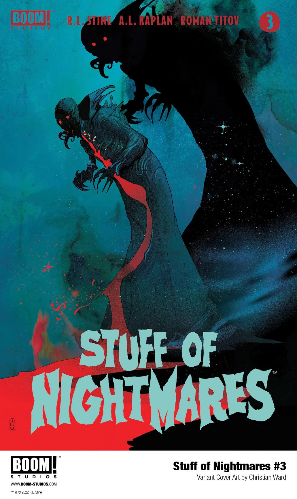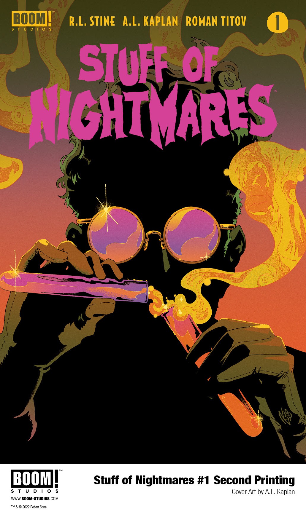 In response to the overwhelming support from retailers and fans, BOOM! Studios has announced Stuff of Nightmares #1 Second Printing, featuring brand new cover art by series artist Kaplan, available in stores October 19, 2022.