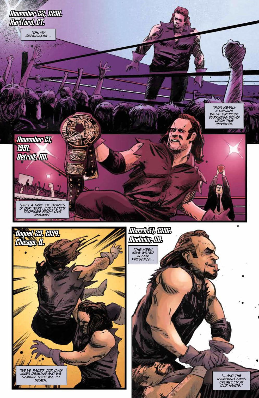 Rather than the normal fare for BOOM! Studio’s WWE comics, this special for WrestleMania is a collection of short stories of one of the biggest events in sports entertainment. Each has a different creative team and tells a different tale of the show of shows. All lettering throughout the issue is by Jim Campbell, who matches well with the style of each story presented.