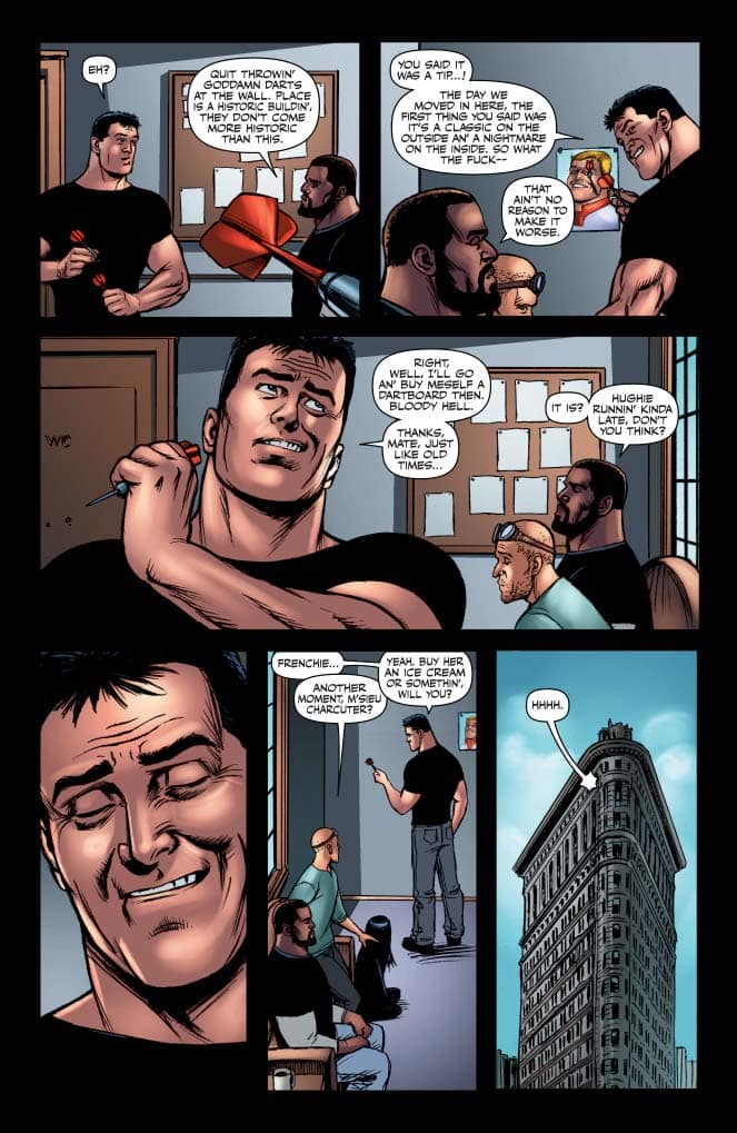 Joining Ennis on this series are some returning greats. Russ Braun picks right back up on interiors years later, after drawing a large chunk of the original series following series co-creator Darick Robertson. Robertson returns to contribute covers. For his first, Robertson once more calls back to the very first cover with The Boys looking down on something, as was also seen with #7 and #50.
