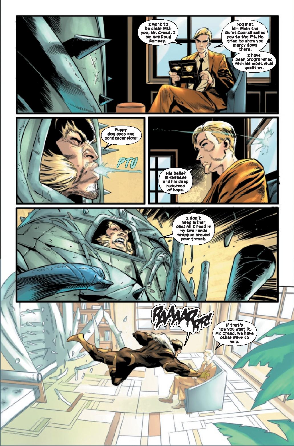 There’s a lack of real emotion to Wolverine #50 as the main story wraps. Creed’s horrible actions are recounted emphasizing his lack of empathy or reflection on any of it. But, Logan shows that same sort of brutality with what feels like no reaction from him or anyone around him. Usually when a person is chopped into bits there’d be some sort of shock, but everyone comes off as rather numb which feels like it diminishes the contrast that’s painted in the text. There’s a disconnect with what we’re told makes Logan different from Creed. We’re told it and not shown it at all.