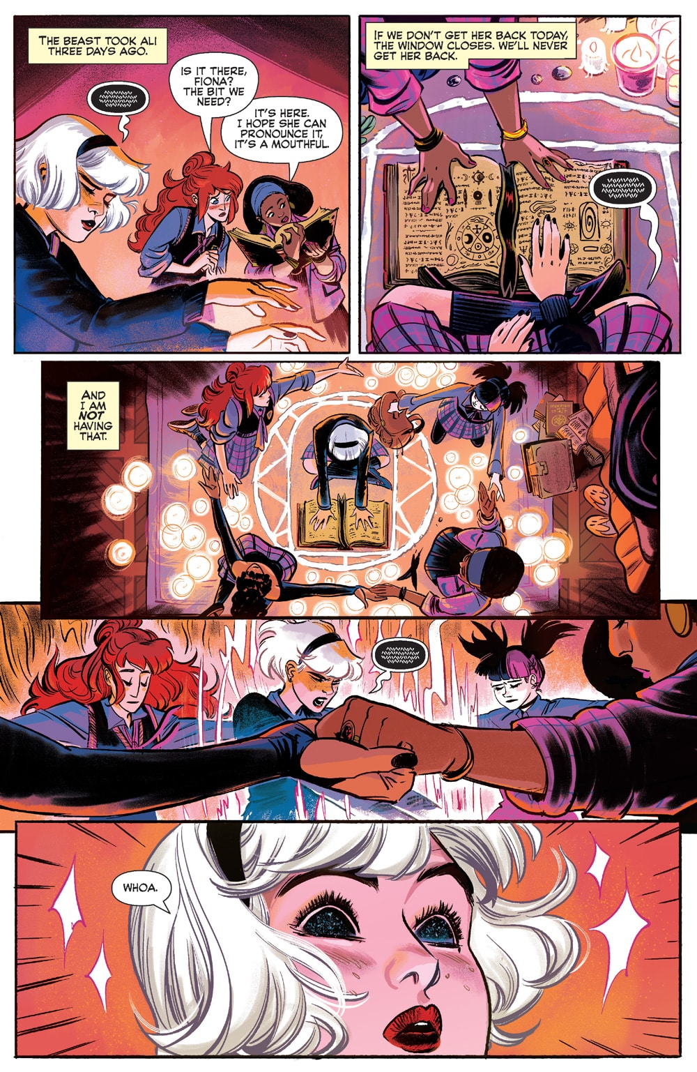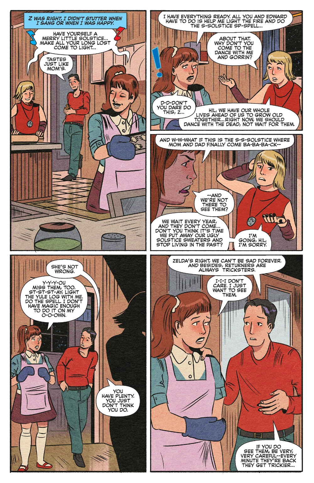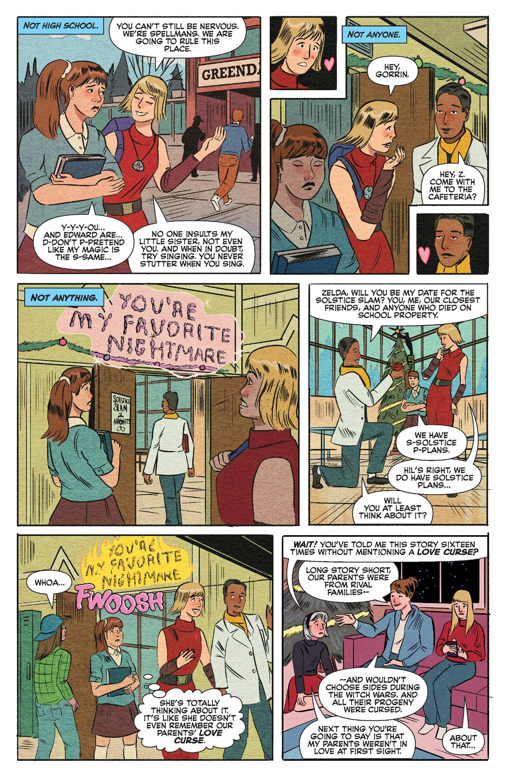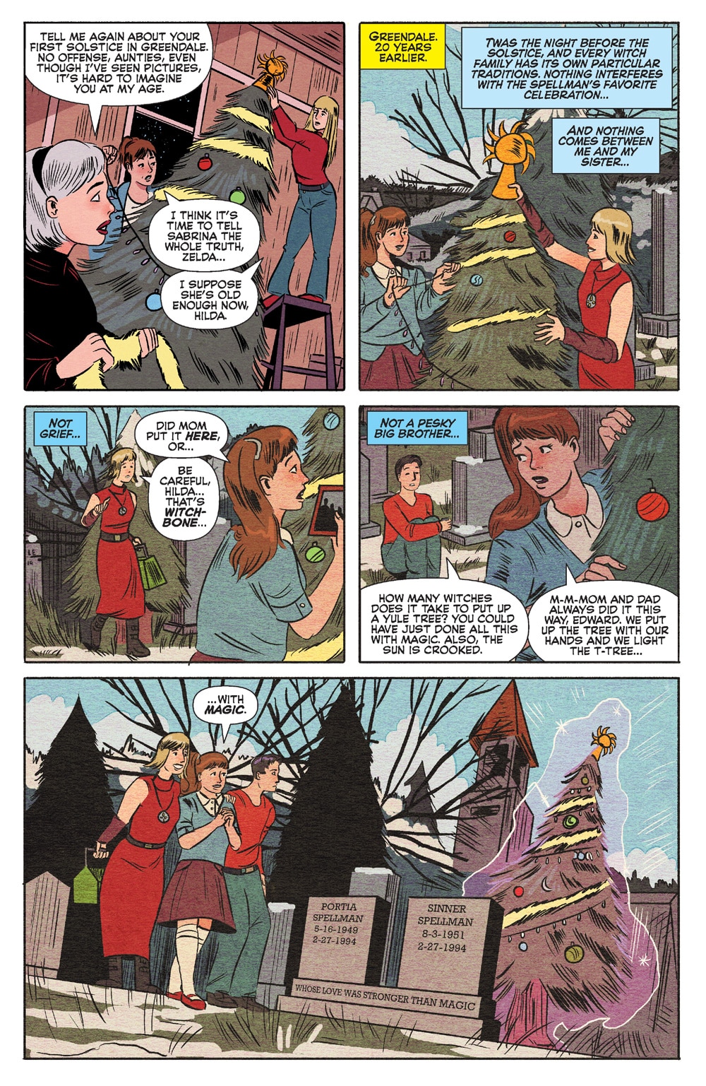 Celebrate the winter solstice with Sabrina Spellman in this special holiday one-shot that returns to the acclaimed world of the Sabrina the Teenage Witch series! First, in “The Longest Night,” at Sabrina’s magic boarding school, she and her friends work together on the longest night of the year to save their friend enthralled by a dark and clever Beast, impossible to kill in his own world, and difficult to kill in our own. Then, in “A Very Spellman Solstice,” a flash backstory shows young Zelda and Hilda breaking tradition to go to a school dance, but when Hilda joins forces with one of the ghosts of Solstice past, it curses their night out. Writer Kelly Thompson and artists Veronica and Andy Fish return for another bewitching Sabrina story, along with the team of writer Danielle Paige and artist Veronica Johnson for a festive flashback story!