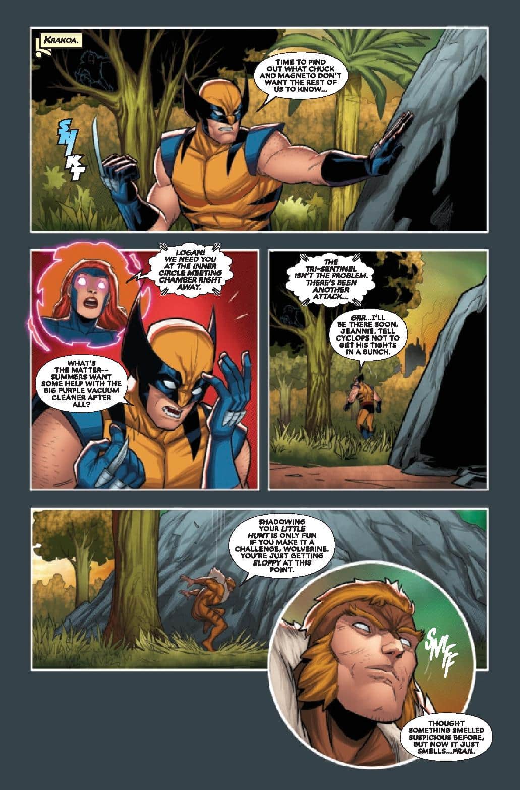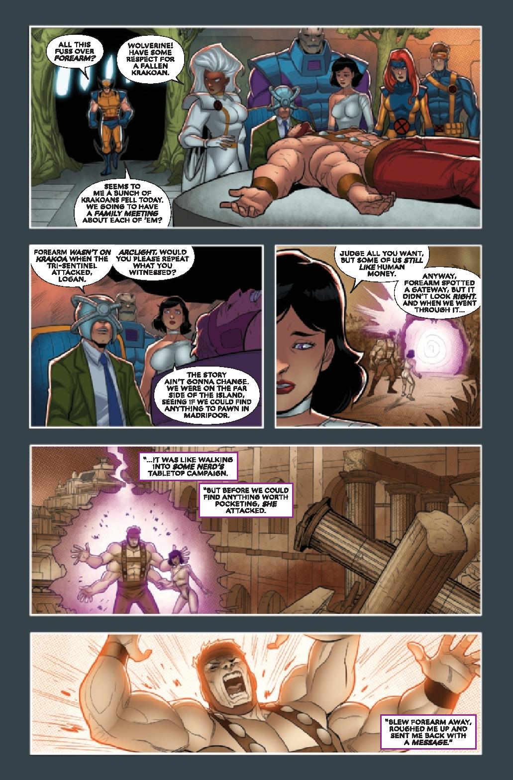We find the X-Men on a mission where they finally have chance to take down the Sentinel threat once and for all, as Wolverine tracks down Trask , right on the precipice of his revenge but he may be too late to stop him from carrying out his plan, which is where Magneto steps in, to help the X-Men. Meanwhile back on Earth,. Psylocke is showing mutants from other countries around the Krakoan Embassy in New York City, where they fend off an attack from a hate crime group , gaining solidarity from these nation states. We also catch up with Professor X, who has found a way for mutants to cheat death, as we find out how Professor X and Magneto become friends again and what lead to the creation of Krakoa. By the issue’s end, we find out Magneto and Professor X have been hiding a secret from everyone else and the Sentinel threat is far from decimated.