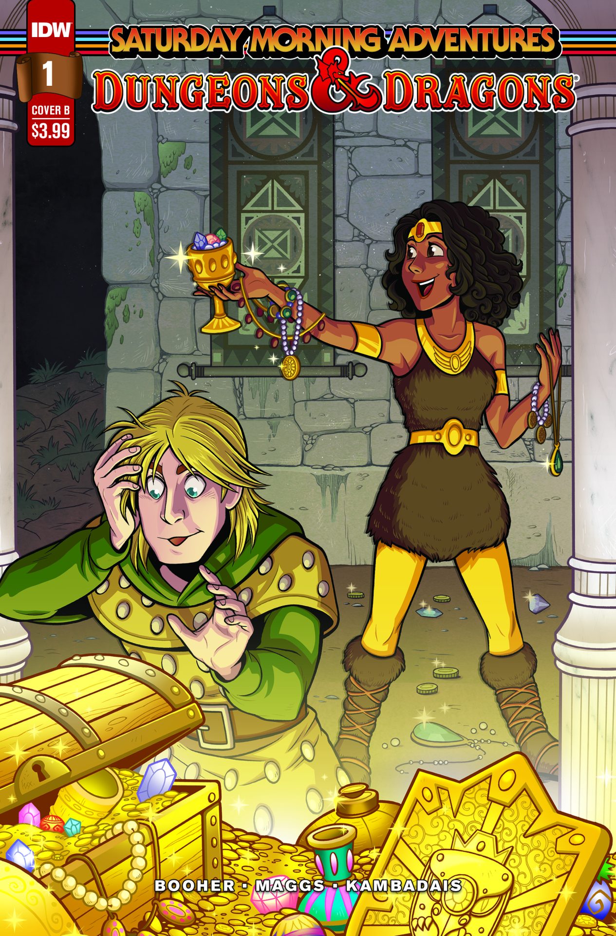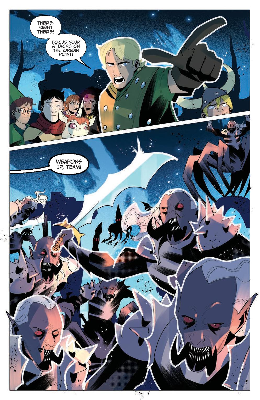 Finally, writer Sam Maggs, artist William Kirkby, Eren Angiolini, and letterer Ariana Maher, with consultation from Matthew Mercer and Sam Riegel of Critical Role, detail Veth Brenatto’s tragic tale of transformation. When the comfortable life with the family she loves is turned upside down by a goblin raid, Veth discovers a new side of herself…and is doomed to become the goblin Nott the Brave of the Mighty Nein.