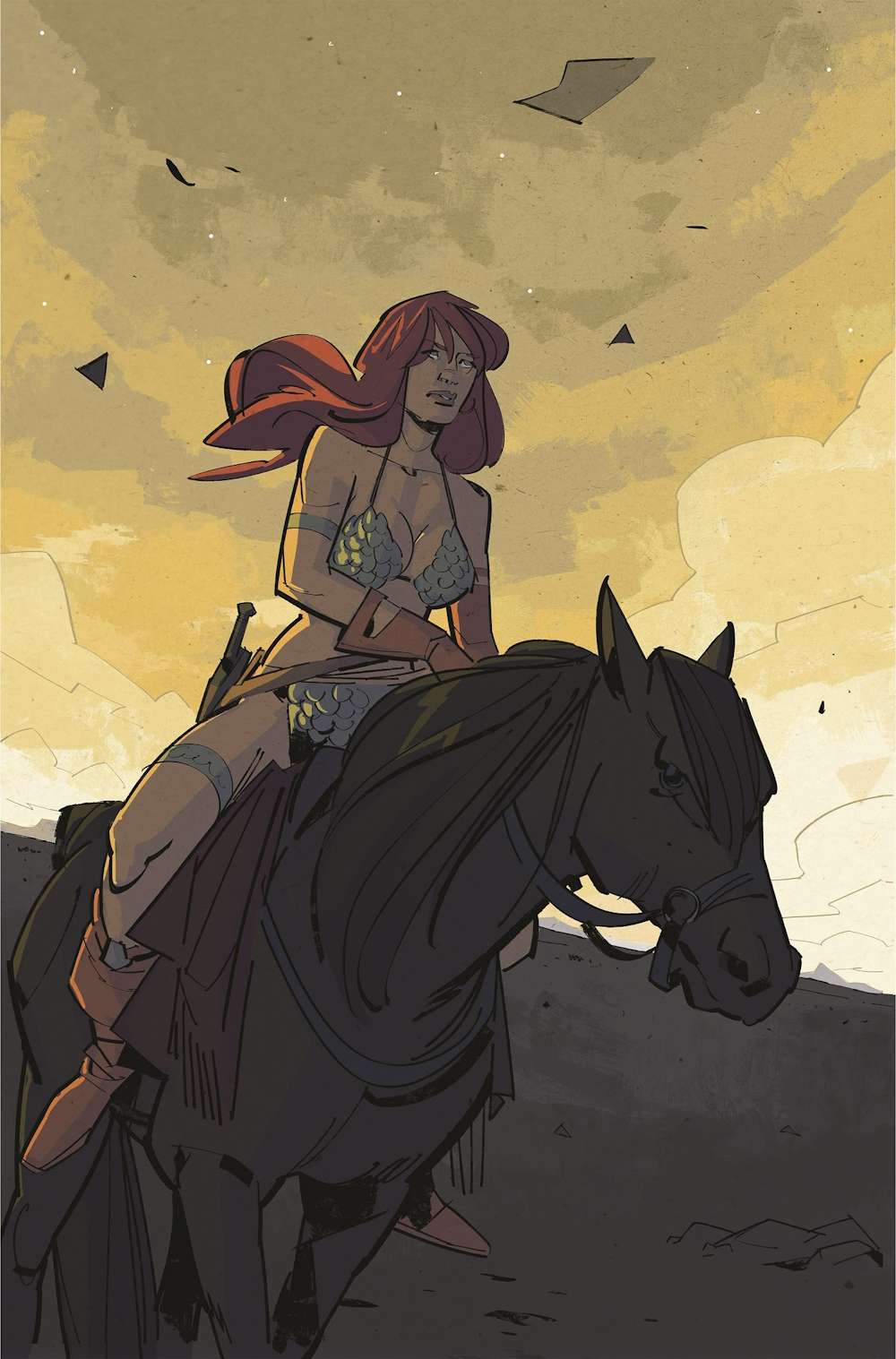 Savage Red Sonja #1 (Dynamite Entertainment) – Tasked with retrieving a long-hidden gem from a crumbled, ancient kingdom, the She-Devil With a Sword is traveling alone through a dangerous wasteland when fate intervenes, and her solo adventure is sidetracked by a wayward prince and his bride as they try desperately to escape from fearsome desert bandits – only to be attacked by a monstrous beast from beneath the sands!
