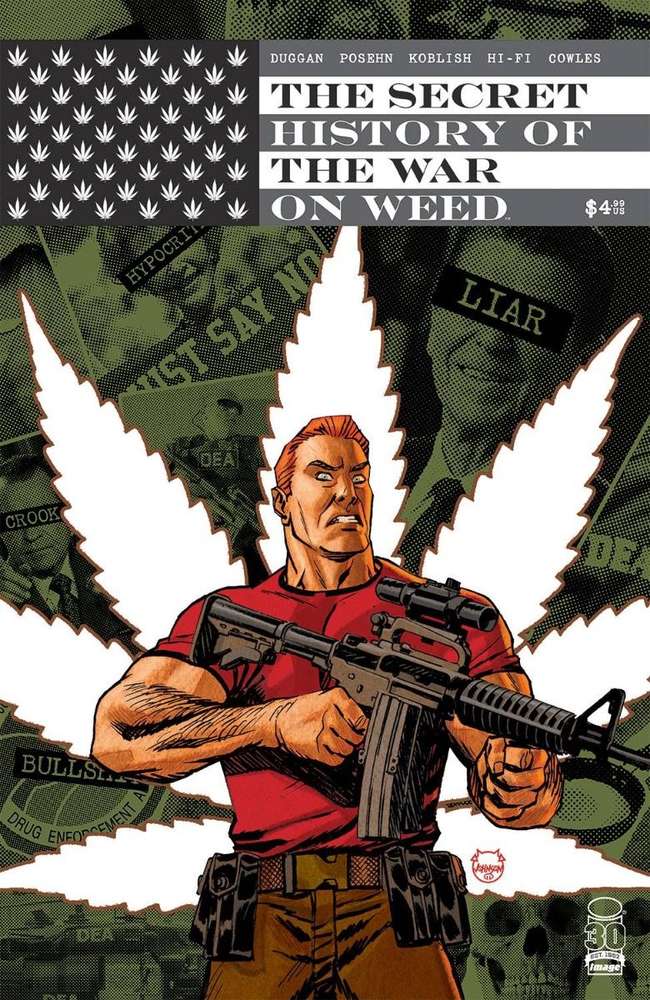 I wouldn’t be surprised if it’s an actual legal requirement to be high when writing a story about weed, be it fiction or nonfiction. The creative team behind Image Comics´ The Secret History of The War on Weed seemed to be well in compliance with this when they put this comic together, and it’s all the better for it. It at least explains why lizard people and horny presidents are part of this hilarious, ridiculous, smart, and even heartfelt comic about the war on ganja and how backwards it is.