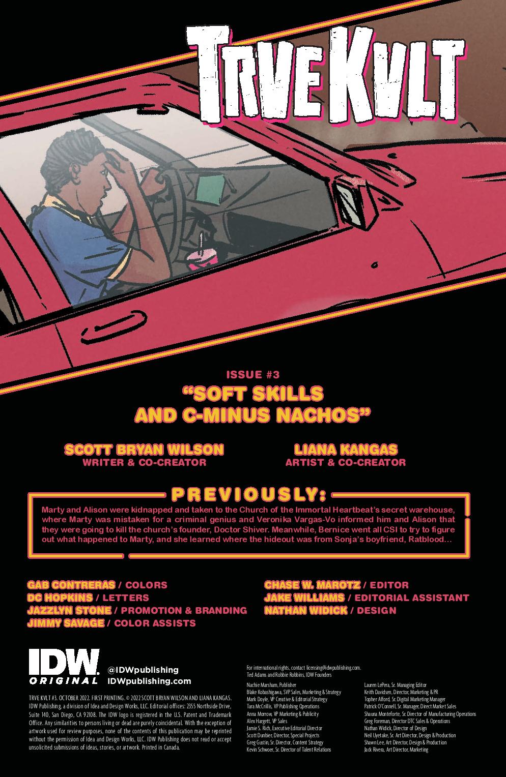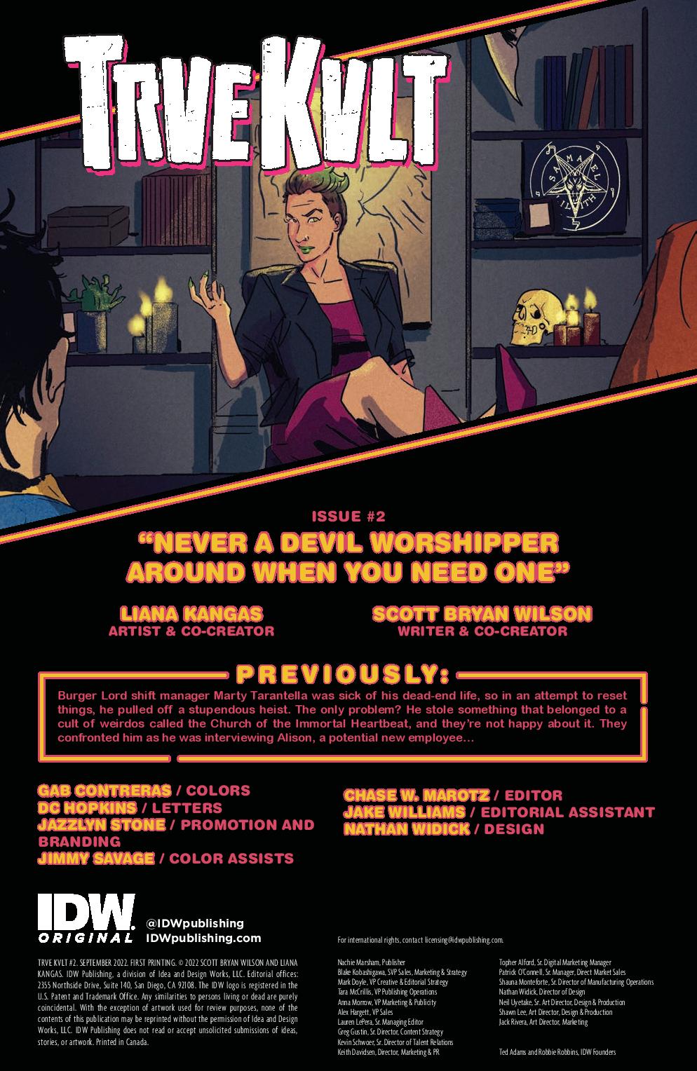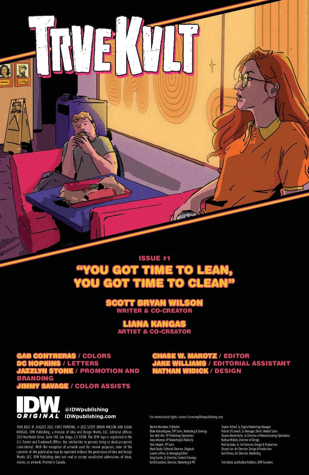 Trve Kvlt, a five-issue miniseries written by Scott Bryan Wilson with art by Liana Kangas, introduces Marty Tarantella, a down-on-his-luck loser whose last-ditch scheme to escape a lifetime of fast-food service sets him on a collision course with a cult of violent, Devil-worshiping lunatics!