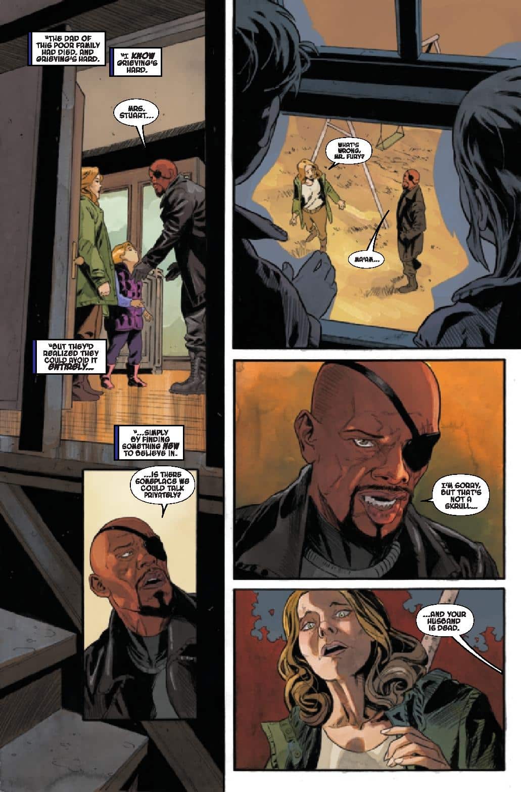 The art by Francesco Mobili is solid. With color by Jordie Bellaire and lettering by Joe Caramagna the art delivers the paranoia of the story. Small details tease what and who you can and can’t trust bringing a visual tension. There’s also a horror aspect at times as Skrulls are revealed in a “jump scare” on page that delivers dread as to what will happen next.