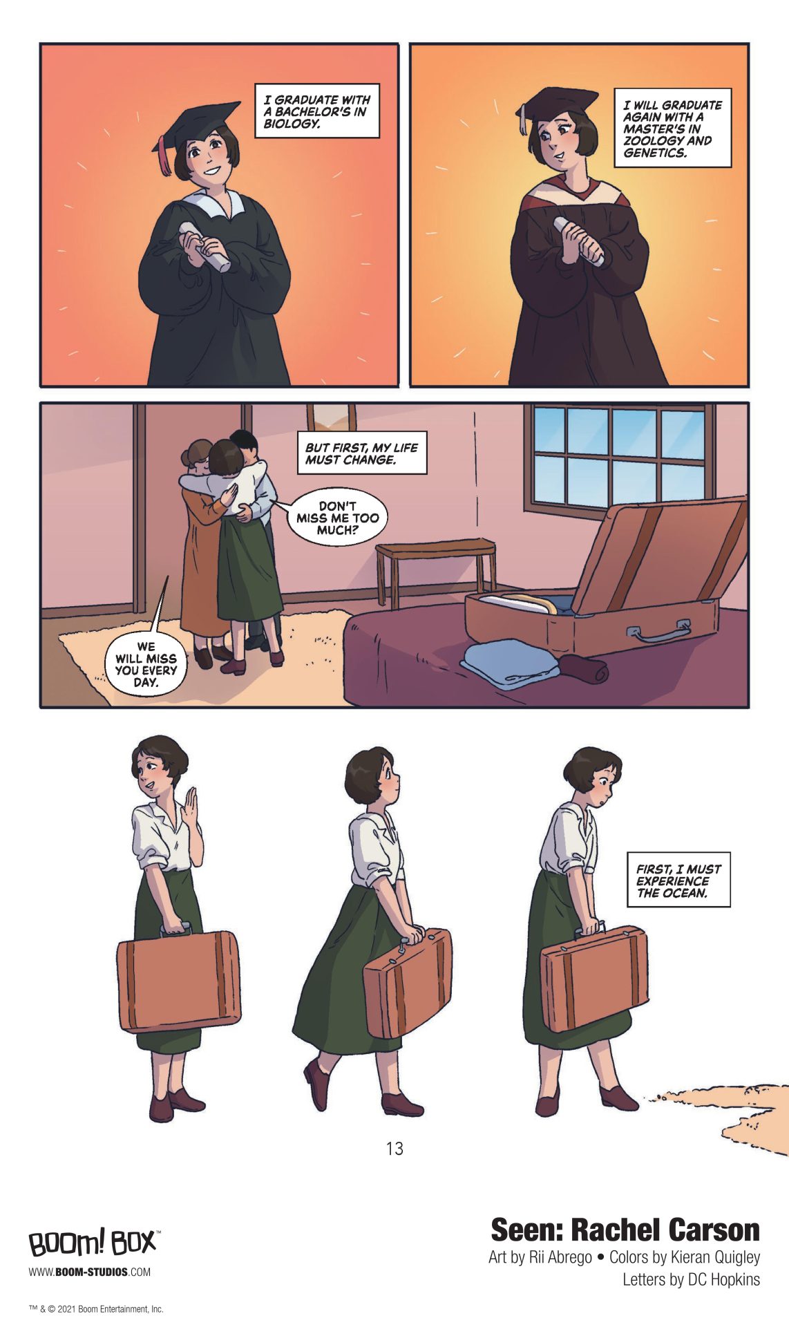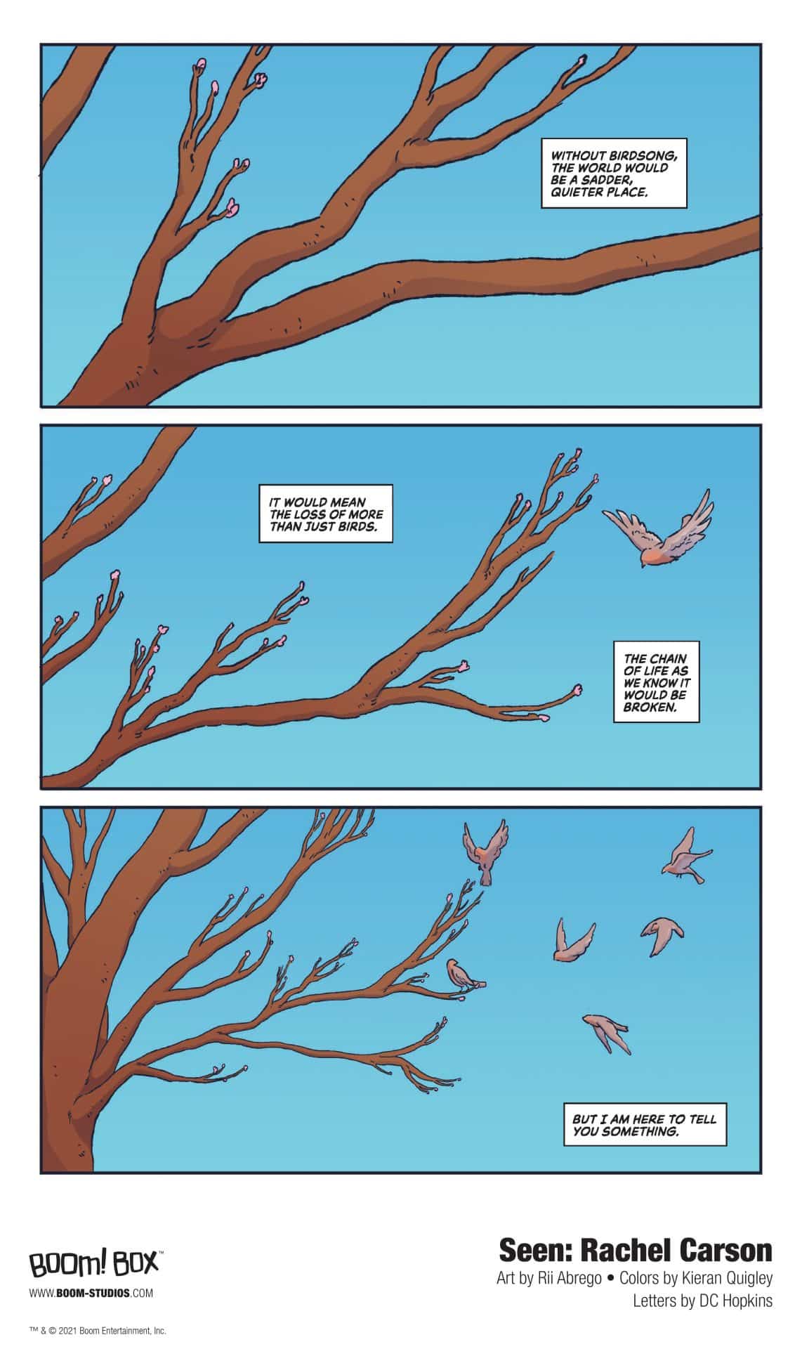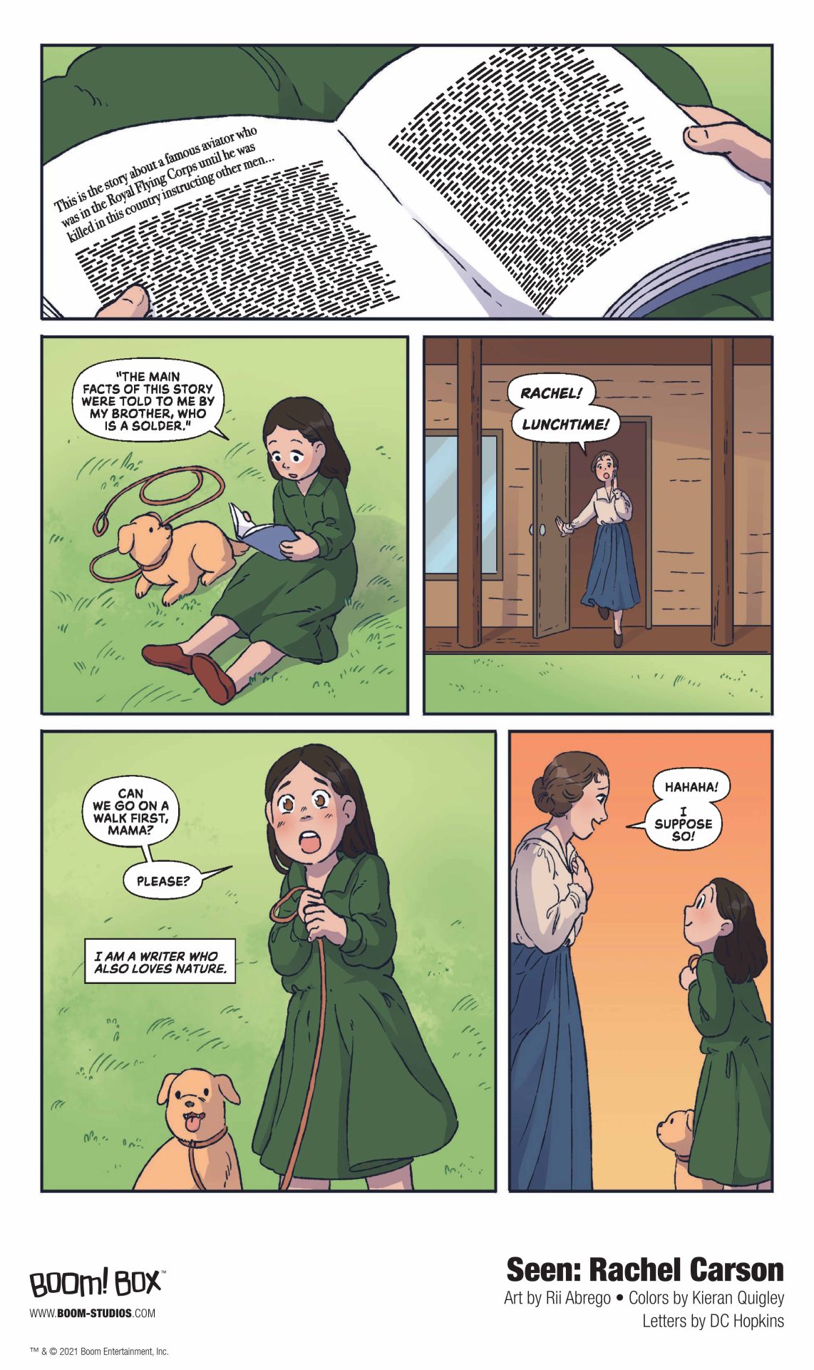 BOOM! Studios has revealed today a first look at Seen: Rachel Carson, a brand new original graphic novel from writer Birdie Willis and artist Rii Abrego in the Seen: True Stories of Marginalized Trailblazers series illuminating the triumphs and struggles of important historical figures who aren’t found in traditional textbooks, but deserve to be remembered for their contributions to humanity and their inarguable strength and courage in the face of impossible odds. They’re the heroes— the inventors, the artists, the activists, and more—whose stories you won’t want to miss.