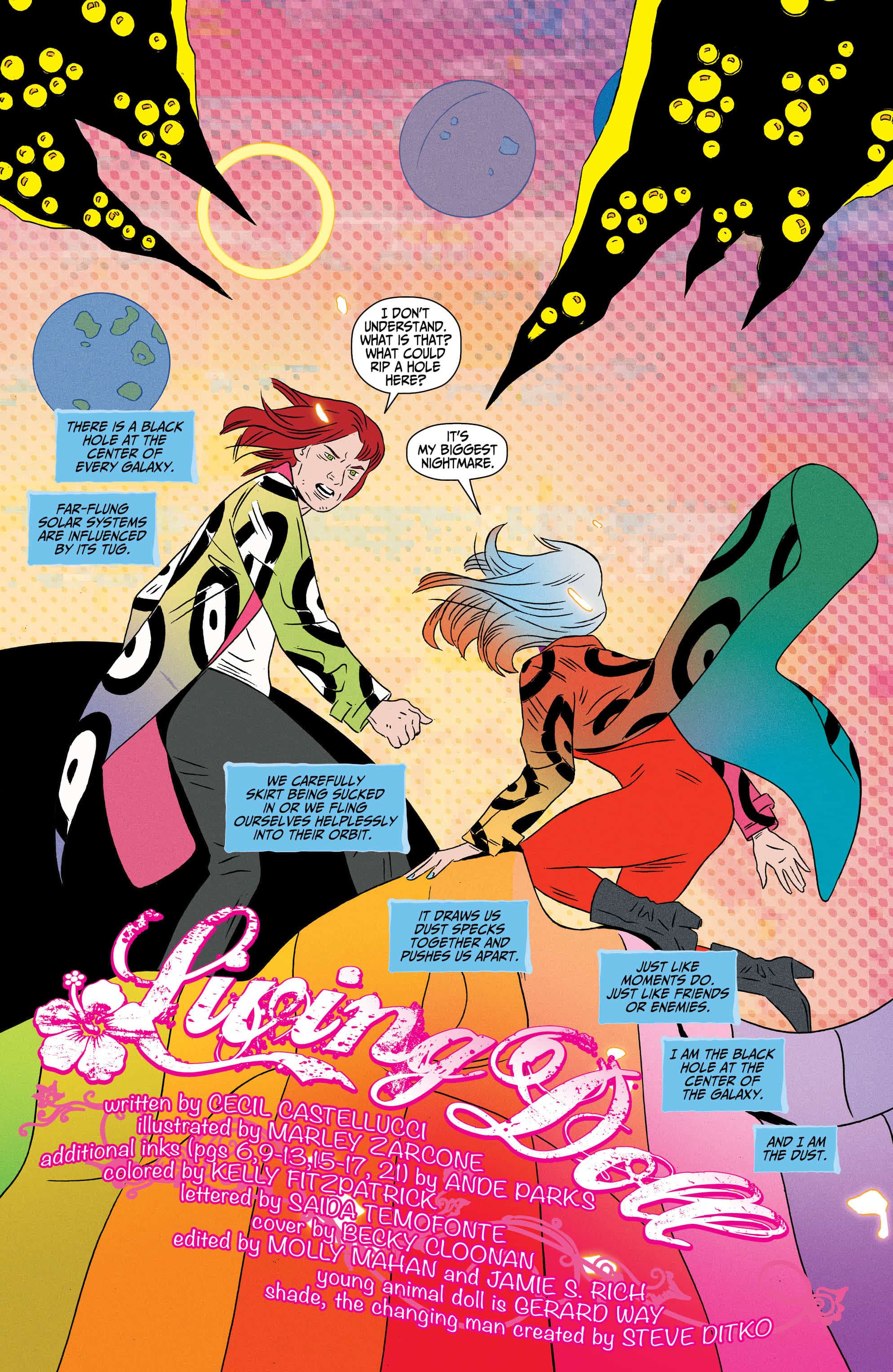 Cecil Castellucci: With Shade, I was looking at what [Steve] Ditko did and what [Peter] Milligan did, and I was trying to honor and echo some of things they did. But then me and Marley [Zarcone] would stake our own claim to that universe. I feel like with Female Furies, I’m looking at Kirby and his magnificent work and looking at the Female Furies and trying to put it through a different lens.