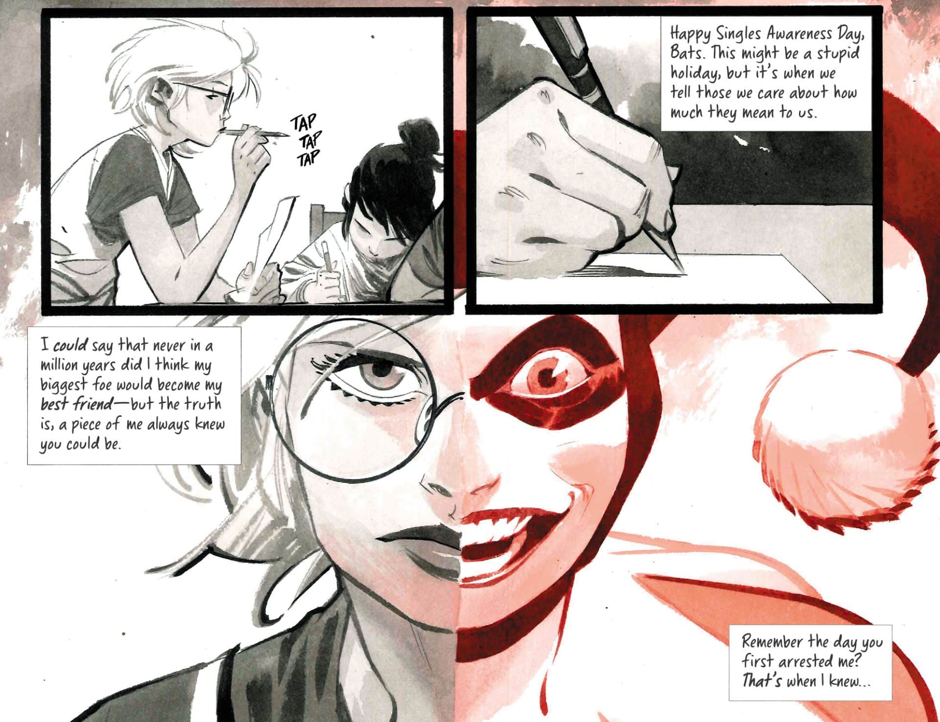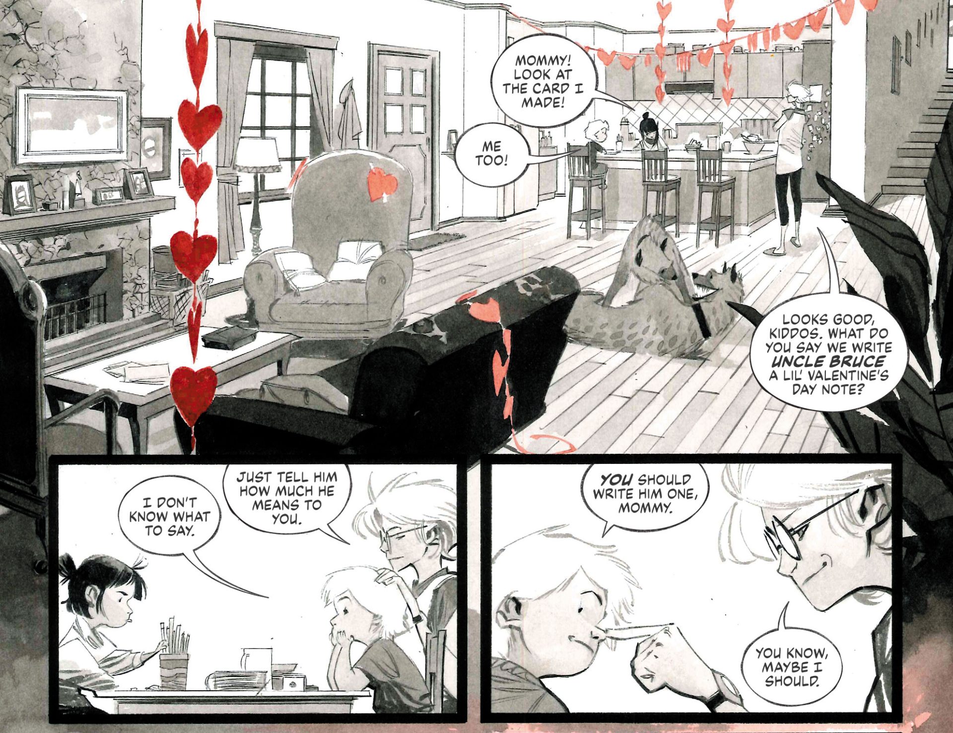 Written by Sean Gordon Murphy and Katana Collins, Harley Quinn: Black + White + Red Chapter Six ties into Batman: White Knight. It also acts as a tie-in to Batman: White Knight Presents: Harley Quinn spin-off series. It’s a cute story that has Harley reflecting upon her first arrest by Batman as she sits with her kids writing Valentine’s Day cards. The chapter is full of humor and solid moments that truly make the issue.
