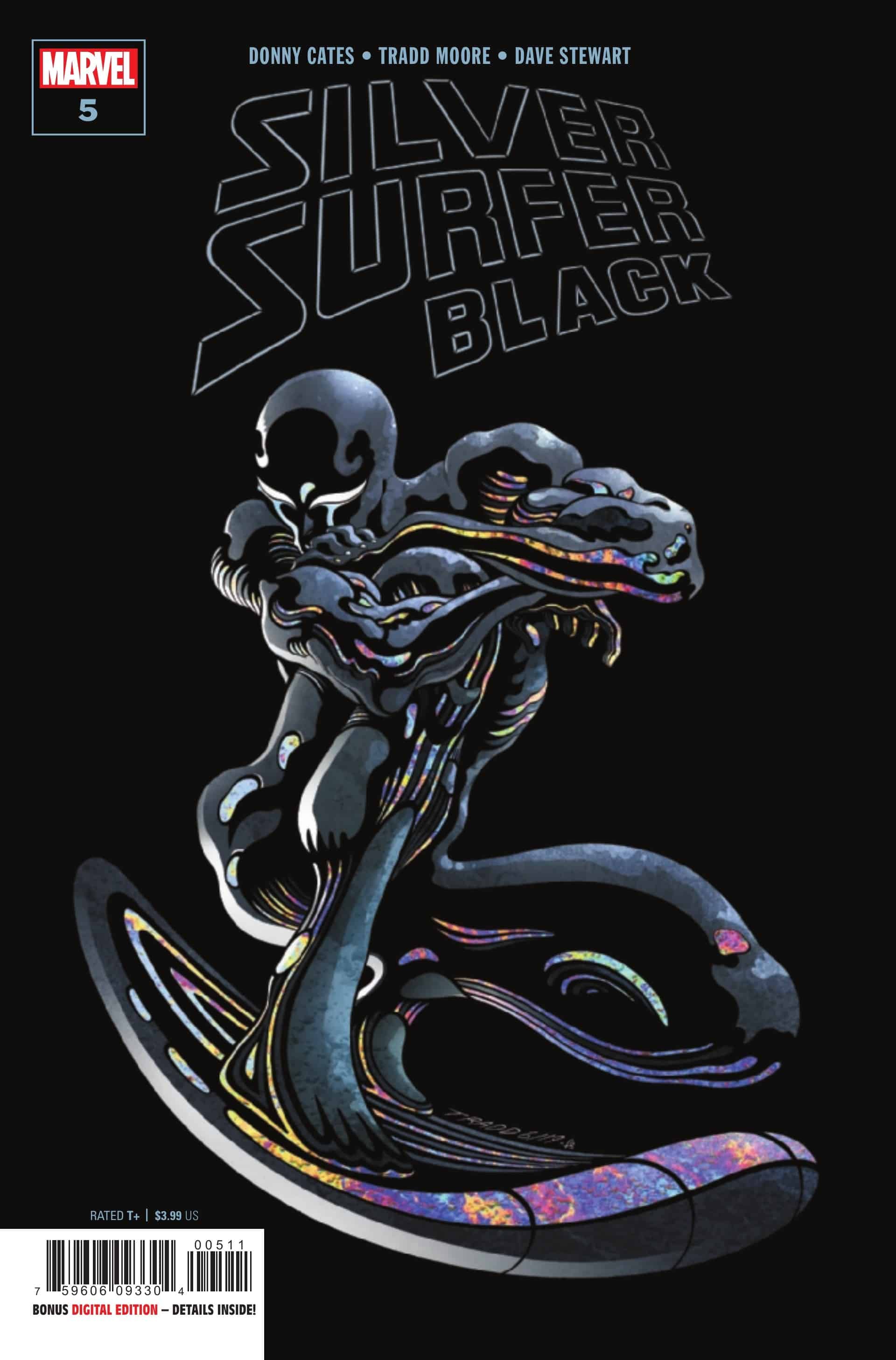 Four years ago, a five-issue miniseries focused on the Sky-Rider of the Spaceways came out from Marvel, Silver Surfer: Black. Written by Donny Cates and illustrated by Tradd Moore, the comic was a trippy take on the classic character. Like any classic, great Surfer story, it delivers powerful meditations on grief and identity while simultaneously pummeling you with giant, otherworldly cosmic greatness.