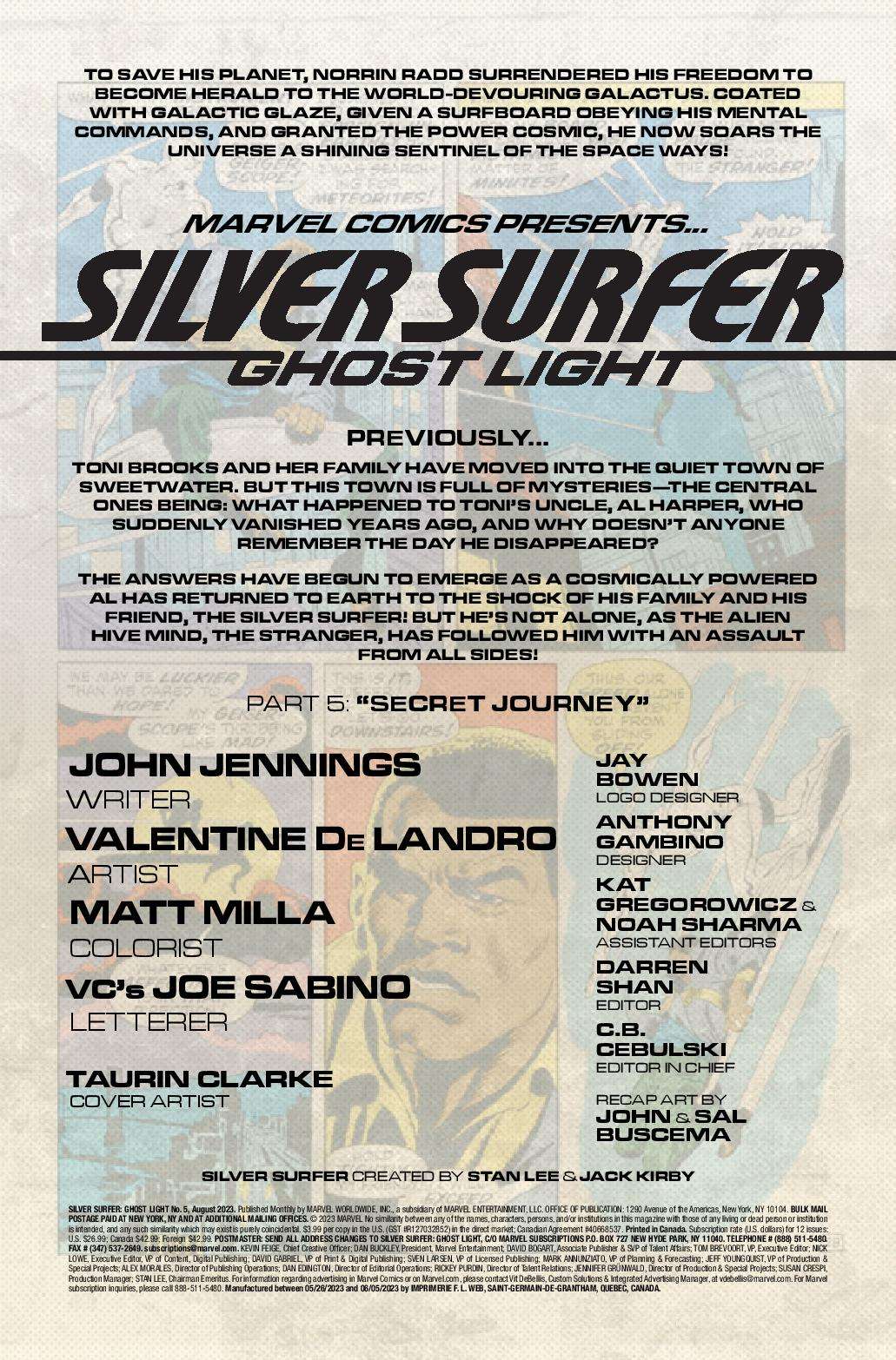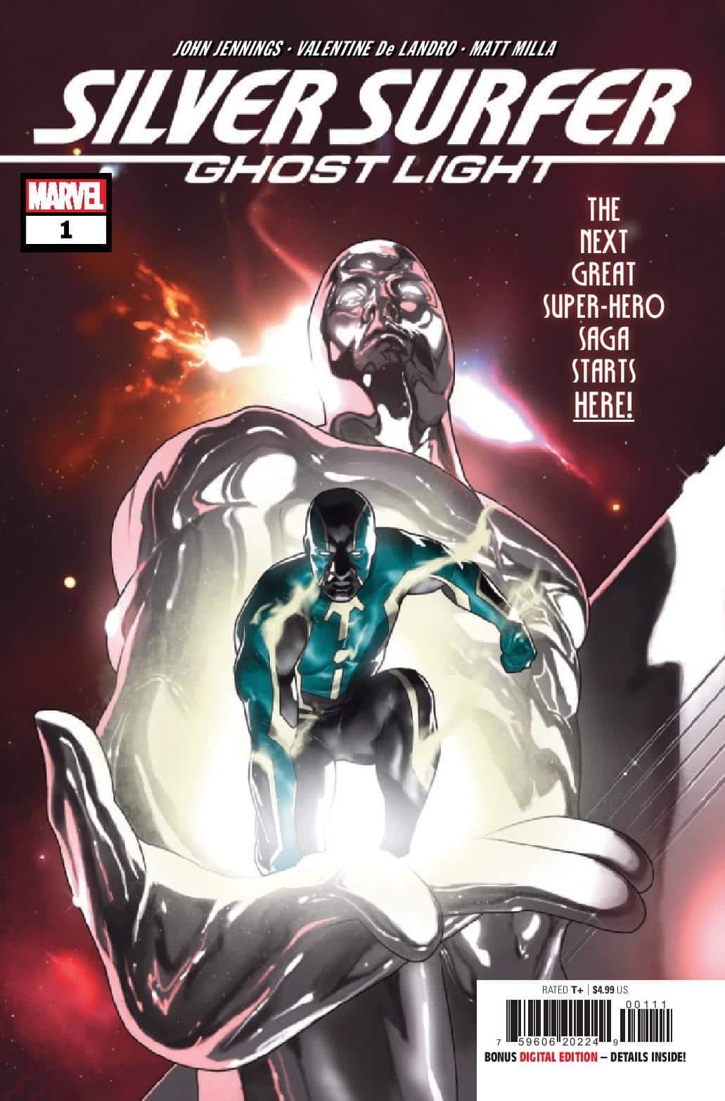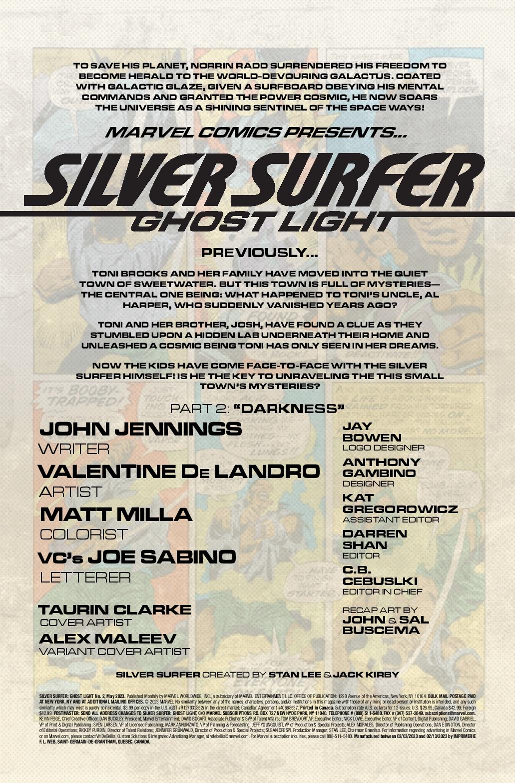 Eisner award winner John Jennings and artist Valentine De Landro introduce a new Marvel Super Hero 54 years in the making in Silver Surfer: Ghost Light! Toni Brooks and her family have moved into the quiet town of Sweetwater. But nothing is quite what it seems with their new home. What mystery did Toni and her family unravel that would call upon the Sentinel of the Spaceways—the Silver Surfer?! And just who or what is GHOST LIGHT? Featuring a cover by Taurin Clarke.