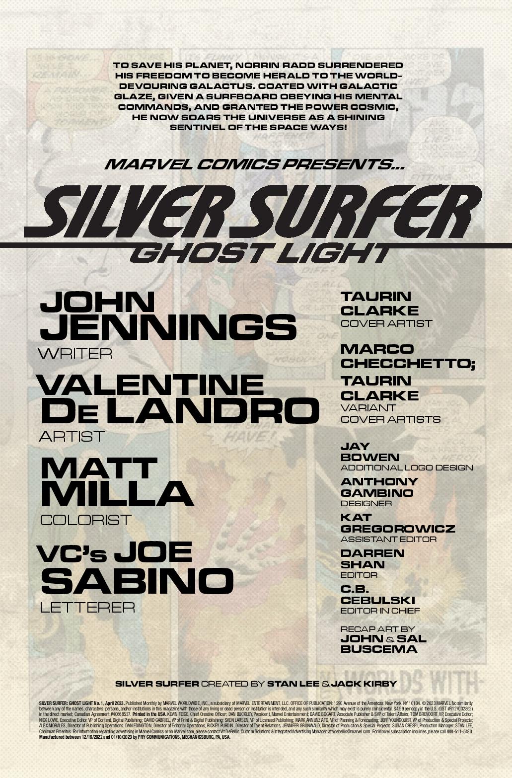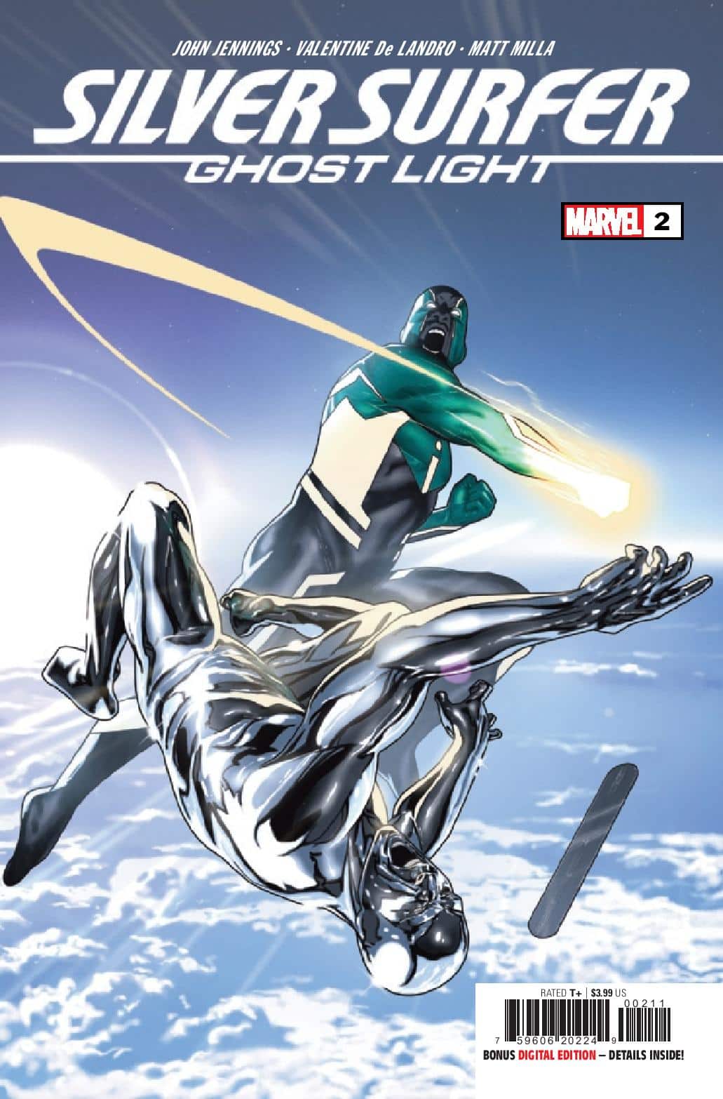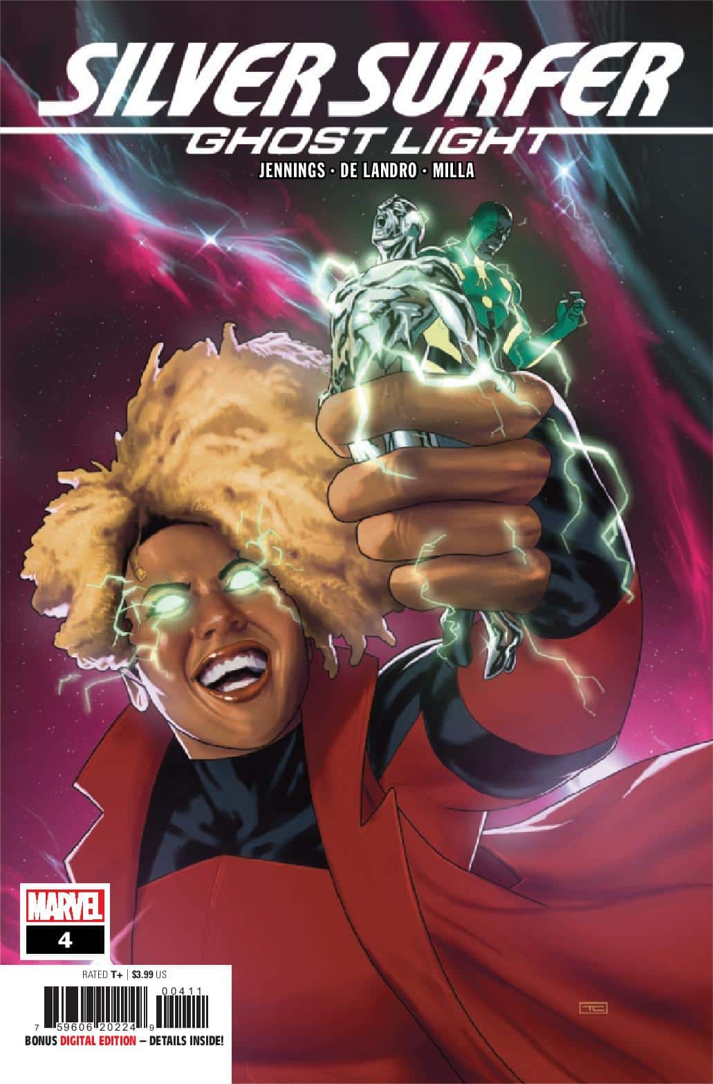 Eisner award winner John Jennings and artist Valentine De Landro introduce a new Marvel Super Hero 54 years in the making in Silver Surfer: Ghost Light! Toni Brooks and her family have moved into the quiet town of Sweetwater. But nothing is quite what it seems with their new home. What mystery did Toni and her family unravel that would call upon the Sentinel of the Spaceways—the Silver Surfer?! And just who or what is GHOST LIGHT? Featuring a cover by Taurin Clarke.