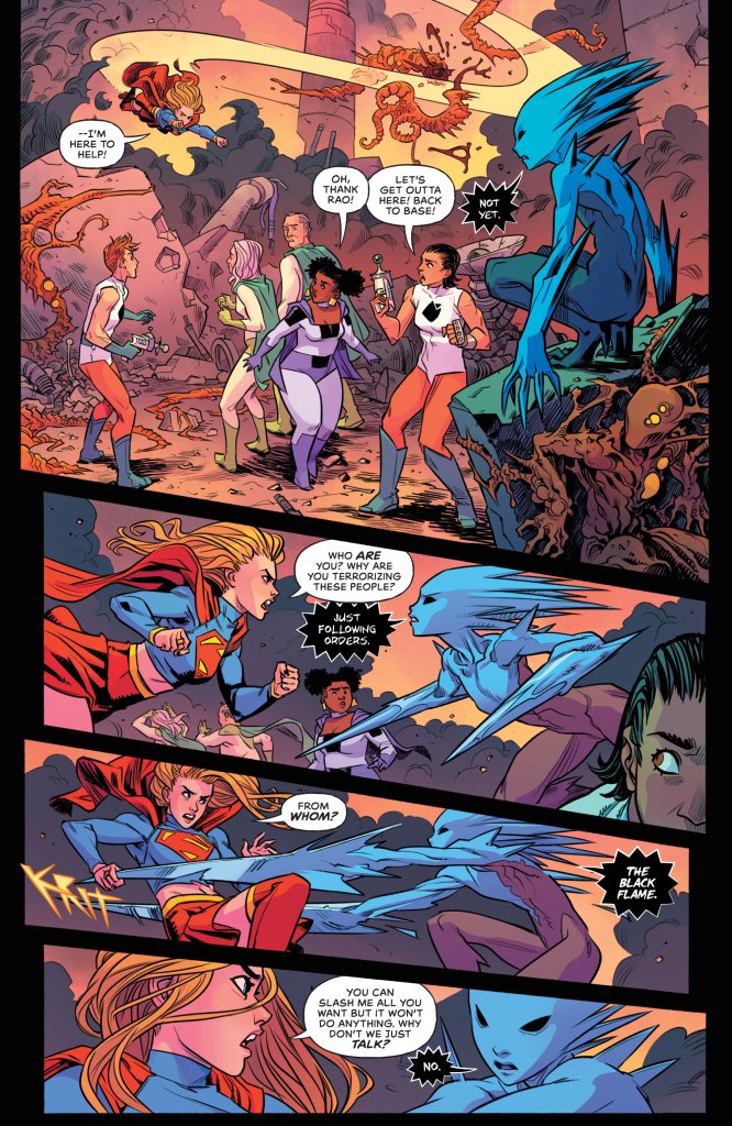 The art by Esau Escorza and Isaac Escorza with color by Luis Antonio Delgado and lettering by Tom Napolitano is also just ok. The Turtles have been blessed with some amazing art in recent years and that includes the Escorza’s work on The Last Ronin. This art though doesn’t quite feel like theirs with a style that feels like a blend of that recent work and art from the Mirage days. Like the dialogue, something feels slightly off about it all. There’s some solid panels and pages but overall, it doesn’t quite click for me.