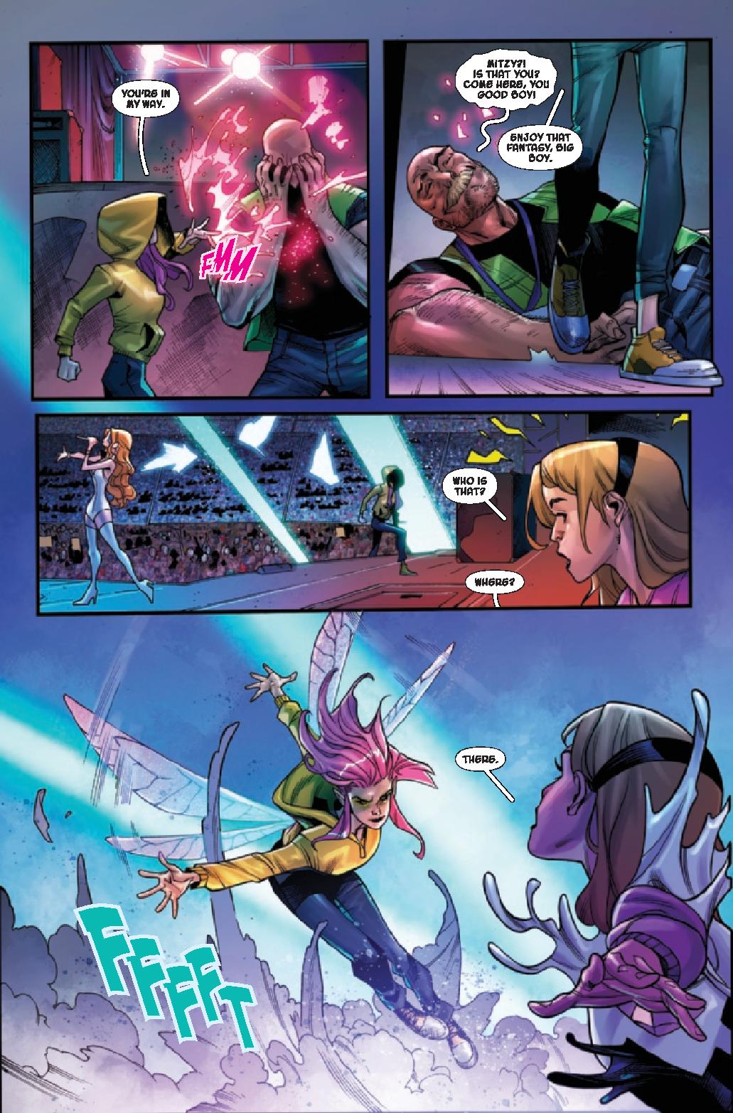 Ghost-Spider and White Fox get caught in Agatha Harkness’ tangled web in this roller coaster of a rumble by writer Karla Pacheco and artist Rosi Kämpe! Gwen Stacy technically isn’t even supposed to be in this universe, and now she’s cutting chem lab to go to…a theme park?! Wait, something doesn’t feel right here – and why is this masked fox attacking her?