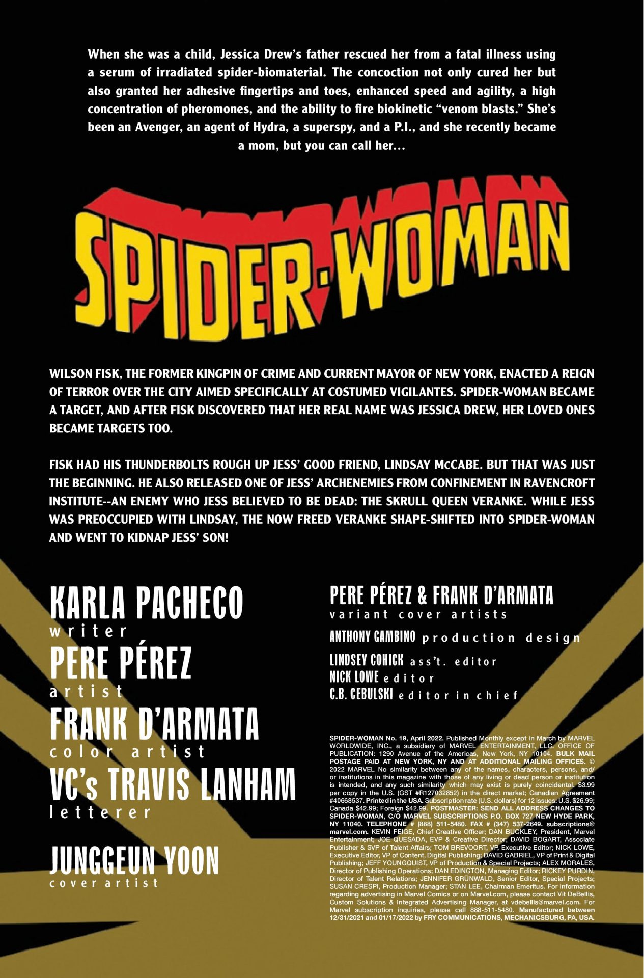 What’s wrong with Jessica? Just how DID she get this job? And who are these violent lunatics who keep trying to blow her up? You’ll have to wait and see, but in the meantime, check out the stunning cover by Junggeun Yoon, showing Jessica doing what she does best in her iconic costume! Strap in because Spider-Woman #1 is on sale this March in comic shops, on the Marvel Comics App, and on Marvel.com!