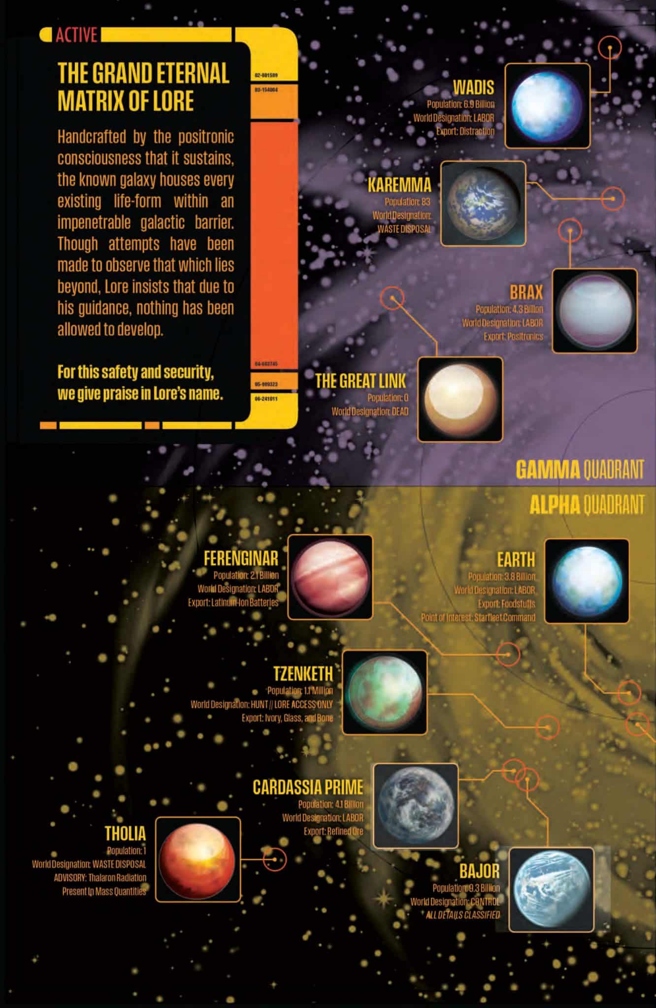 Lore War shows us a universe rebuilt in Lore’s image. The crews of the Theseus and the Defiant are scattered across the universe with no memory of who they once were—some even worship Lore as their God. Lore has won; his rule is absolute. But the Sisko remains, and there are forces who wish to remind him of his power.