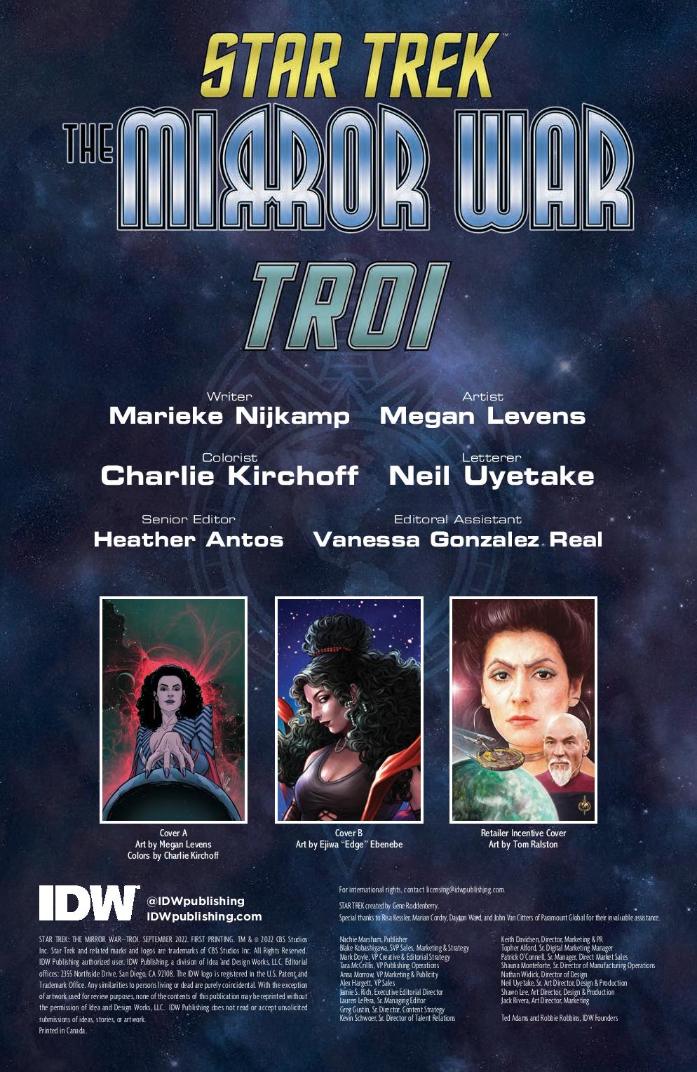 It’s not until you get older that you start to see it’s the journey that makes you. It is what makes you resilient. It’s what prepares you for the road ahead. In Star Trek: The Mirror War – Troi #1, we find a fan favorite’s voyage thus far, in the Mirror Universe.