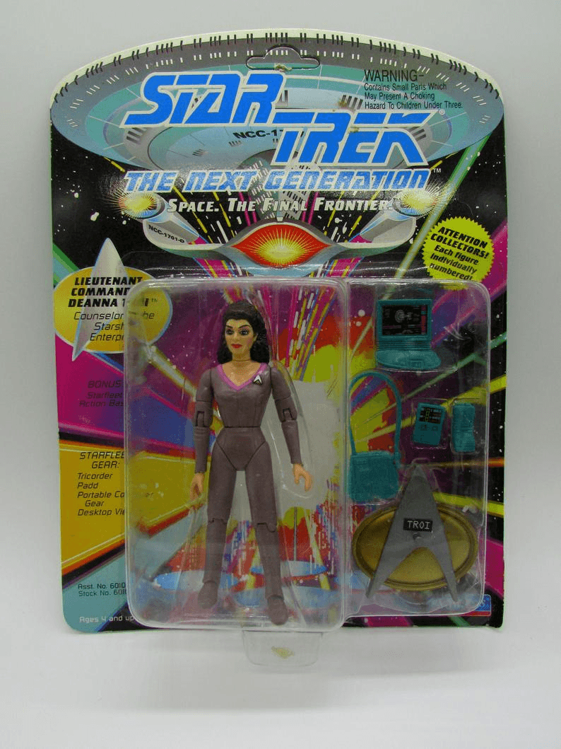 It’s a familiar story (hell, I’ve told it twice in this column). You’re trying to put together a wave, and one figure remains elusive. At this point, it was the first wave of the ST:TNG figures from Playmates. I didn’t have much trouble putting together the first nine, but Counselor Deanna Troi seemed lost in the wild. In January of 1993, as a sophomore in college, I started dating Rebecca Marie Jones. A couple of weeks after that, she went home for the weekend and she and her mother ended up at a craft/antique fair at a local mall. When she came back Sunday night, she had Deanna Troi. I always say that’s how I knew she was the one; we’ve been married almost 20 years and have two teenage boys. I told that story on Twitter once, and Marina Sirtis herself liked it, which is awesome. To this day, Becky will still text me from Walgreens and what-not, checking if I have something in particular or if I’d like her to look for something. That’s love, kids. (Thank you, Becky.) There have been others over time, sure. But it’s hard to beat that one.