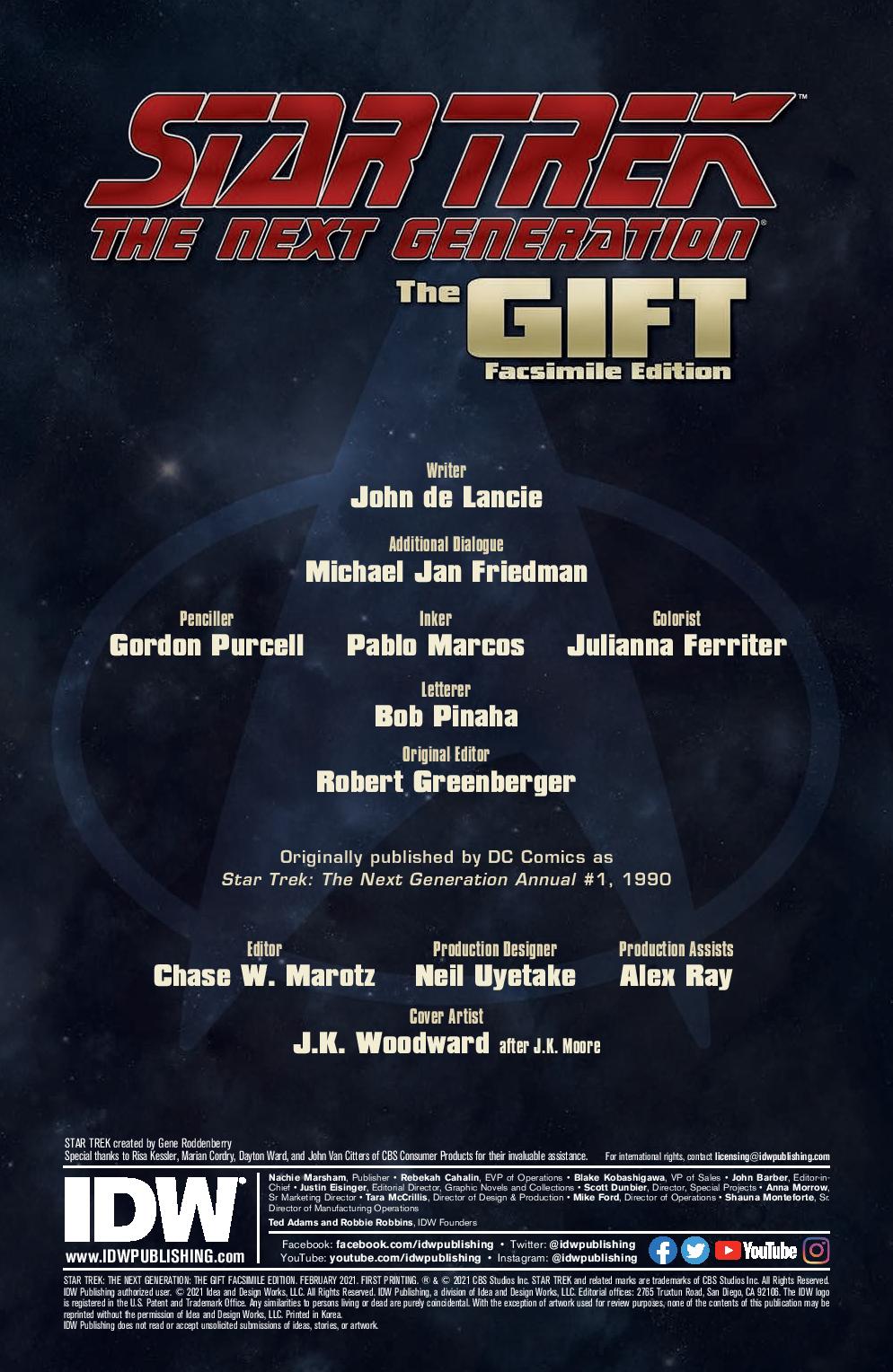 An all-new reprint of the classic TNG story! Q gives Jean-Luc Picard the chance to go back in time to fix one of his biggest mistakes, but the consequences of his actions will create a ripple effect that will threaten the entire Federation! Written by Q himself – actor John de Lancie – with art by Gordon Purcell and a newly painted cover by J.K. Woodward.