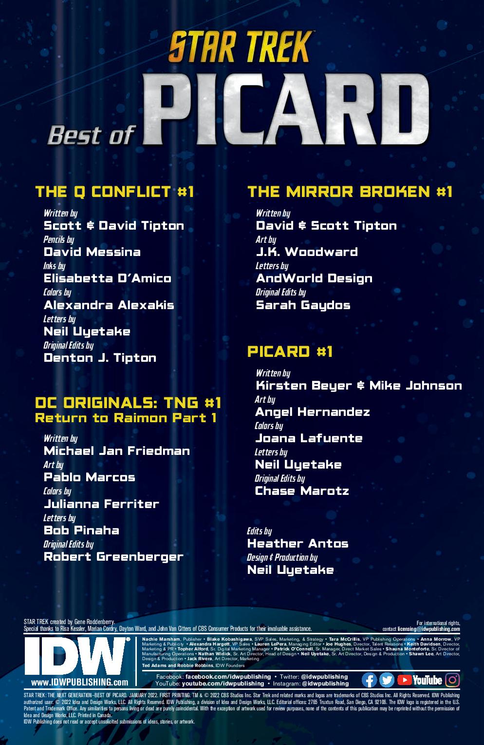 In “The Q Conflict”, Q creates a conflict between the TOS, TNG, DS9 and Voyager crews. In “The Mirror Broken#1”, we find a very evil version of the crew in the Mirror Universe, one where war is where they thrive. In “ DC Originals:TNG#1-Return to Raimon Part 1”,Picard uncovers a conspiracy to murder a monarch, one that puts the away crew in danger. In the last story“Picard#1”, we find out about what transpired in Picard’s final year before the events of the first season of Picard.