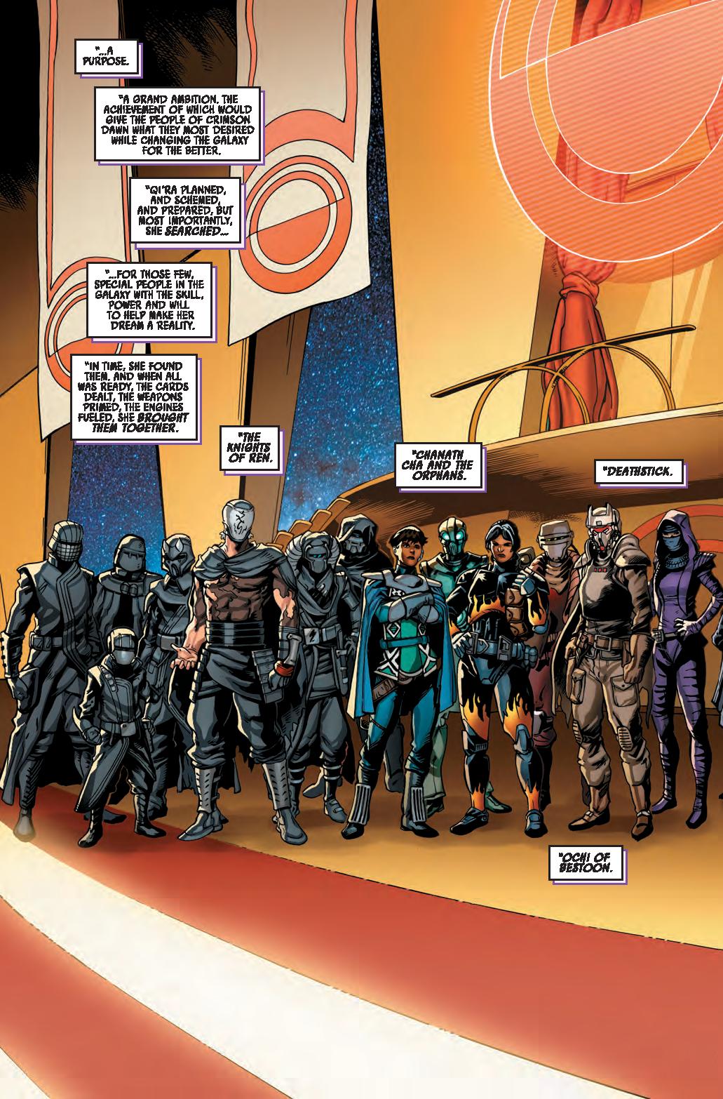 AFTER THE DAWN… COMES THE REIGN! The story that began with War of the Bounty Hunters continues in Charles Soule and Steven Cummings’ Star Wars: Crimson Reign #1! This second installment of the trilogy sees Qi’ra and Crimson Dawn begin their plan to reshape the Star Wars Galaxy during the Age of Rebellion. Featuring the return of beloved characters, shocking twists, epic feats of the Force and a story that will reach from Star Wars’ darkest underworld all the way to the Imperial palace on Coruscant, Crimson Reign is a Star Wars saga like no other! The new printing features a cover by Leinil Francis Yu and sketch cover by Steven Cummings.