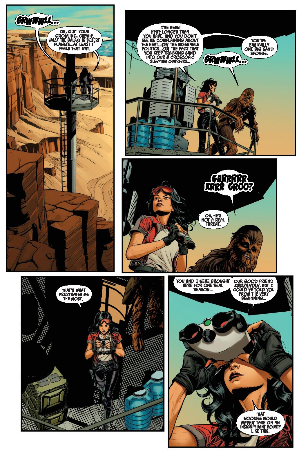 THE DOCTOR & THE WOOKIEE! After months in the New Republic’s service against her will, DOCTOR APHRA and CHEWBACCA are tasked with providing security for a vital diplomatic mission on a remote desert kingdom! But a connection from the past threatens to upend the whole event! Who is the mystery saboteur, and will they successfully foil Aphra’s operation?