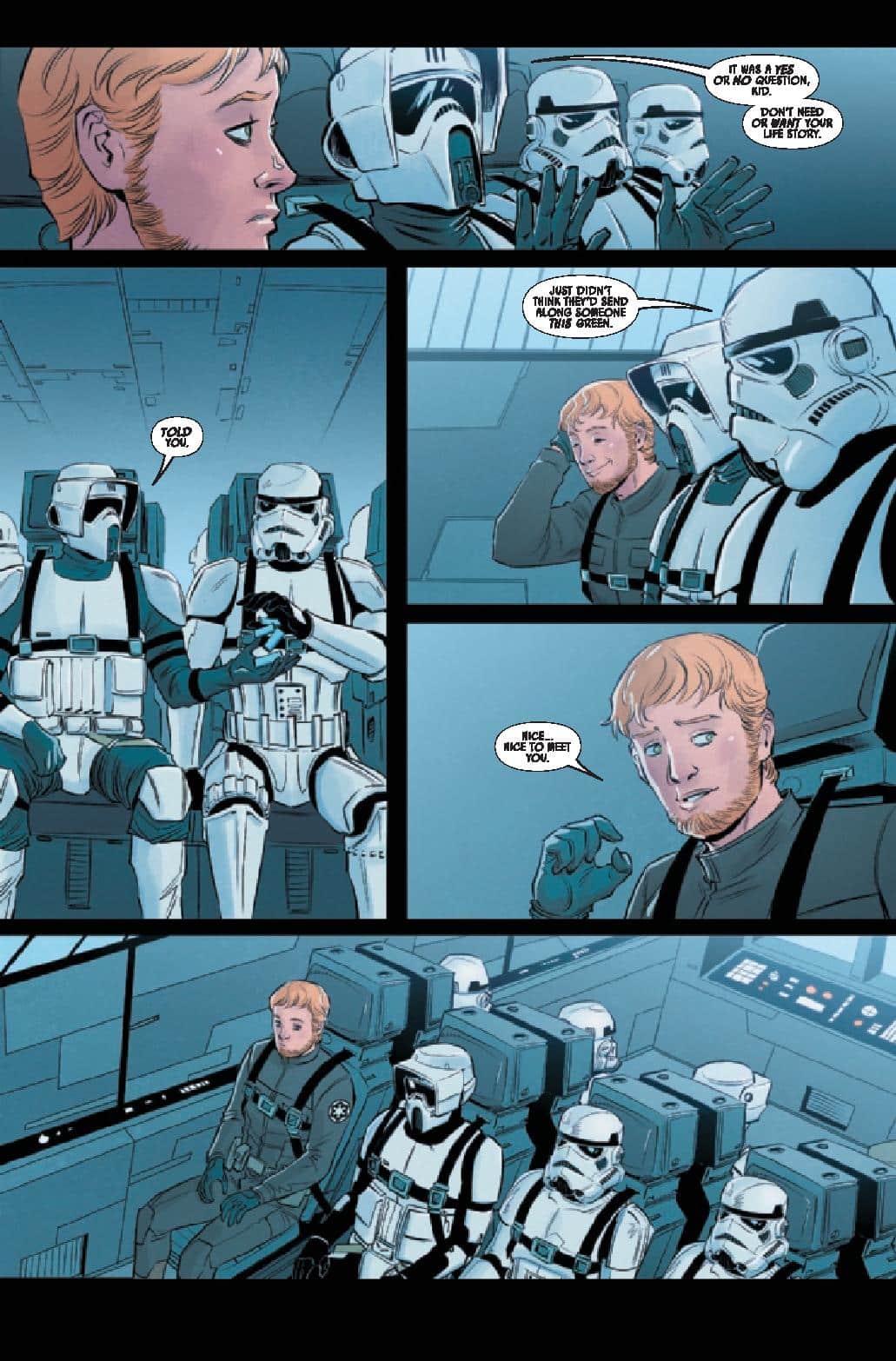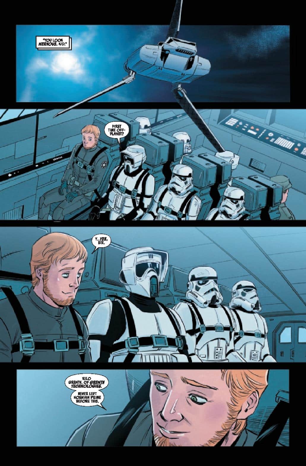 We meet a young technician, Rilo Grenth, who has been hired for top secret installation on Endor. As we soon find out his family’s business was pressured into taking the job, as he soon finds his accommodations far from welcoming. As he tries making friends, but it does not go well, which leads him to traverse outside and see how the planet is, this is when he encounters an Ewok one evening when he run tests, he accidentally discovers the plan for the Death Star, something he soon realizes is about to get him into a lot of trouble, and he does. By the issue’s end, Rilo goes to prison and soon realizes that his fellow prisoners are there for ridiculous reasons too.