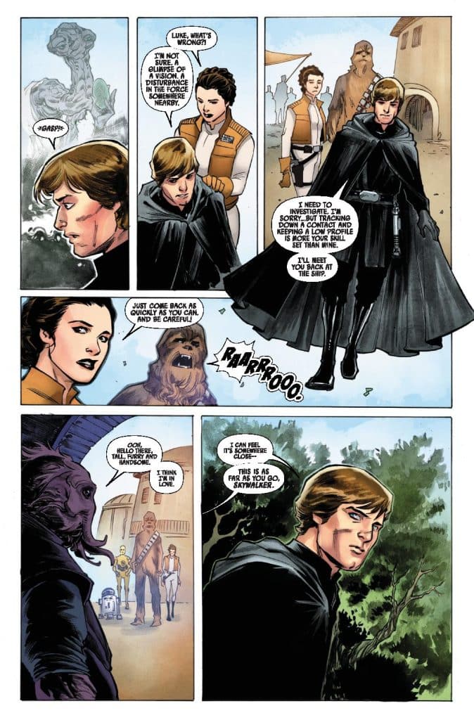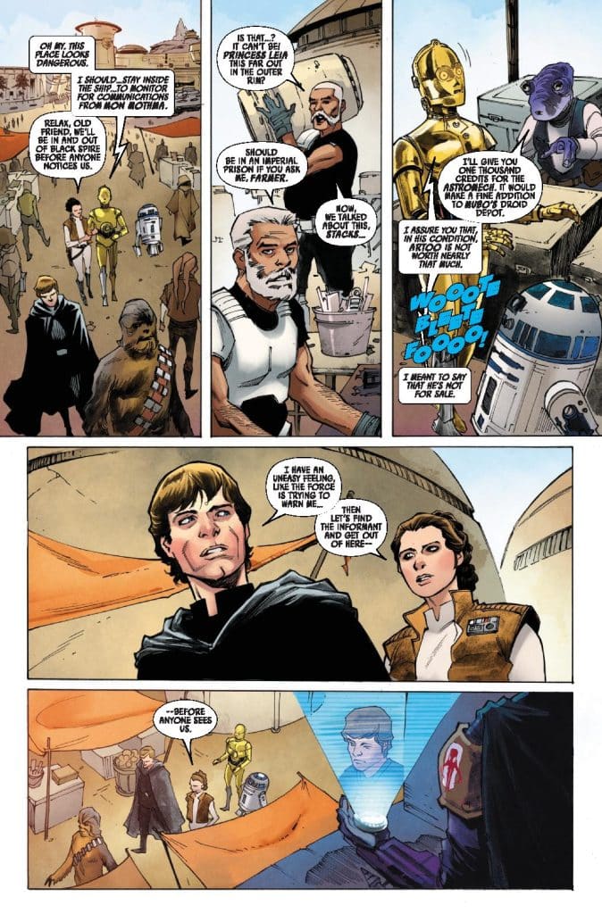 NEW SECRETS OF GALAXY’S EDGE REVEALED! LUKE SKYWALKER, PRINCESS LEIA and CHEWBACCA head to BATUU in search of important intel and stumble upon a dangerous relic — one that puts them on a collision course with the EMPIRE! Galaxy’s Edge writer Ethan Sacks and artists Jethro Morales & Roi Mercado tell an all-new story inspired by Star Wars: Galaxy’s Edge.
