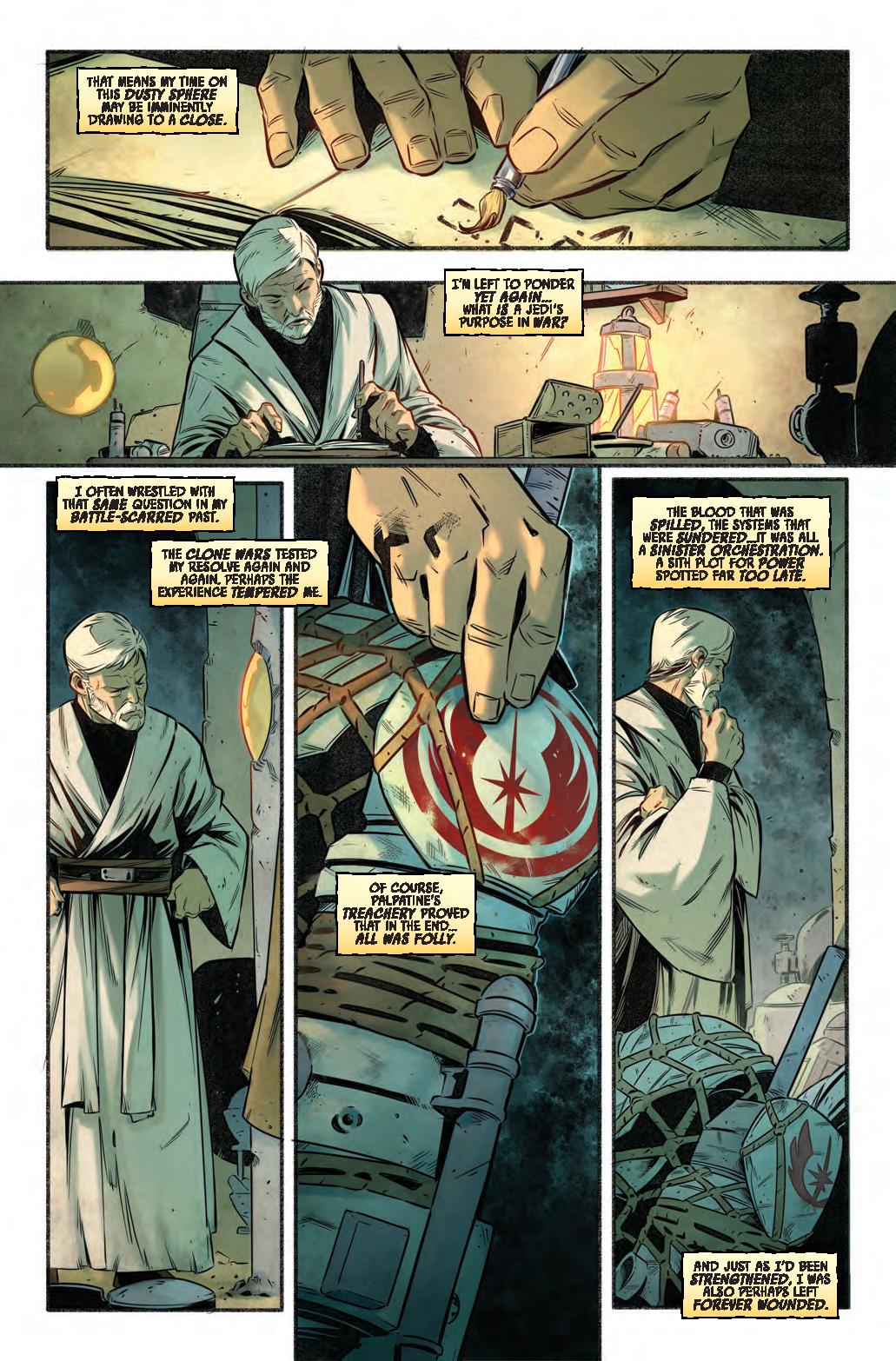 Accessories include an LED light-up lightsaber, with interchangeable lightsaber blades emulating the weapon in motion, and multiple lightsaber hilts, as well as a holoprojector with Obi-Wan Kenobi and Fifth Brother holograms.