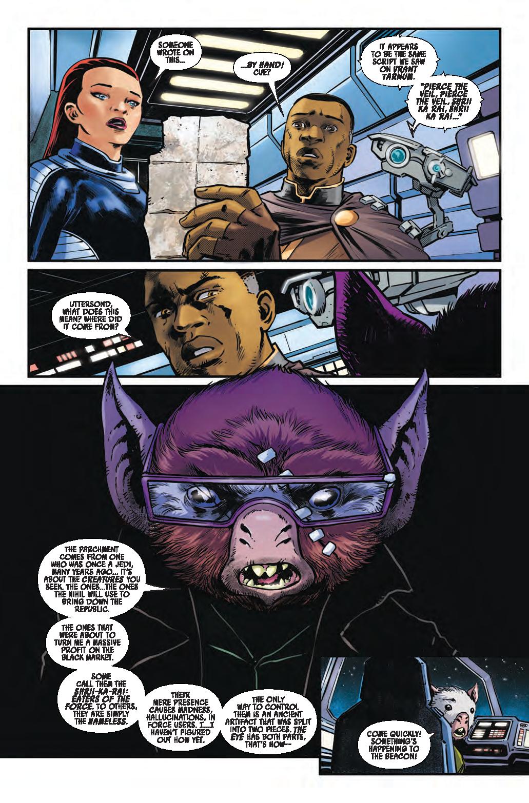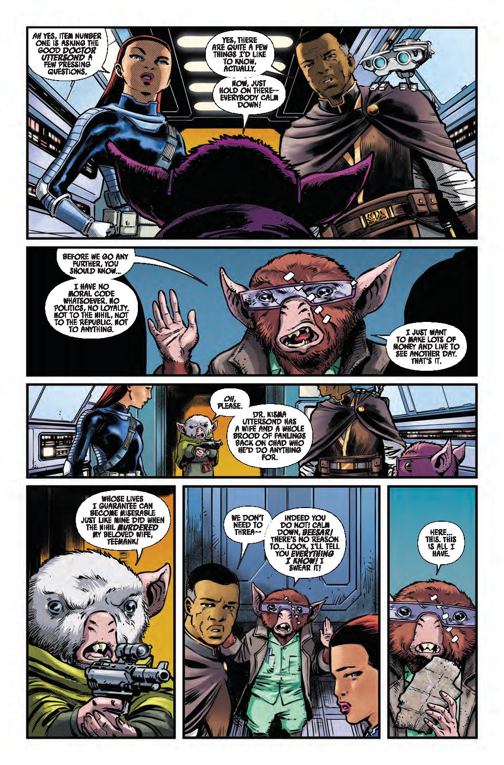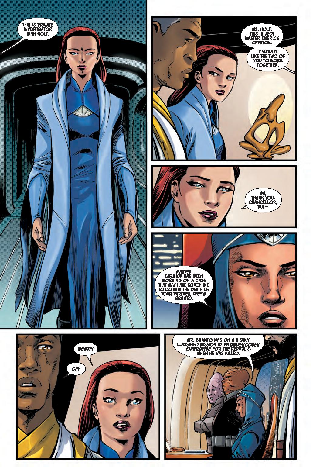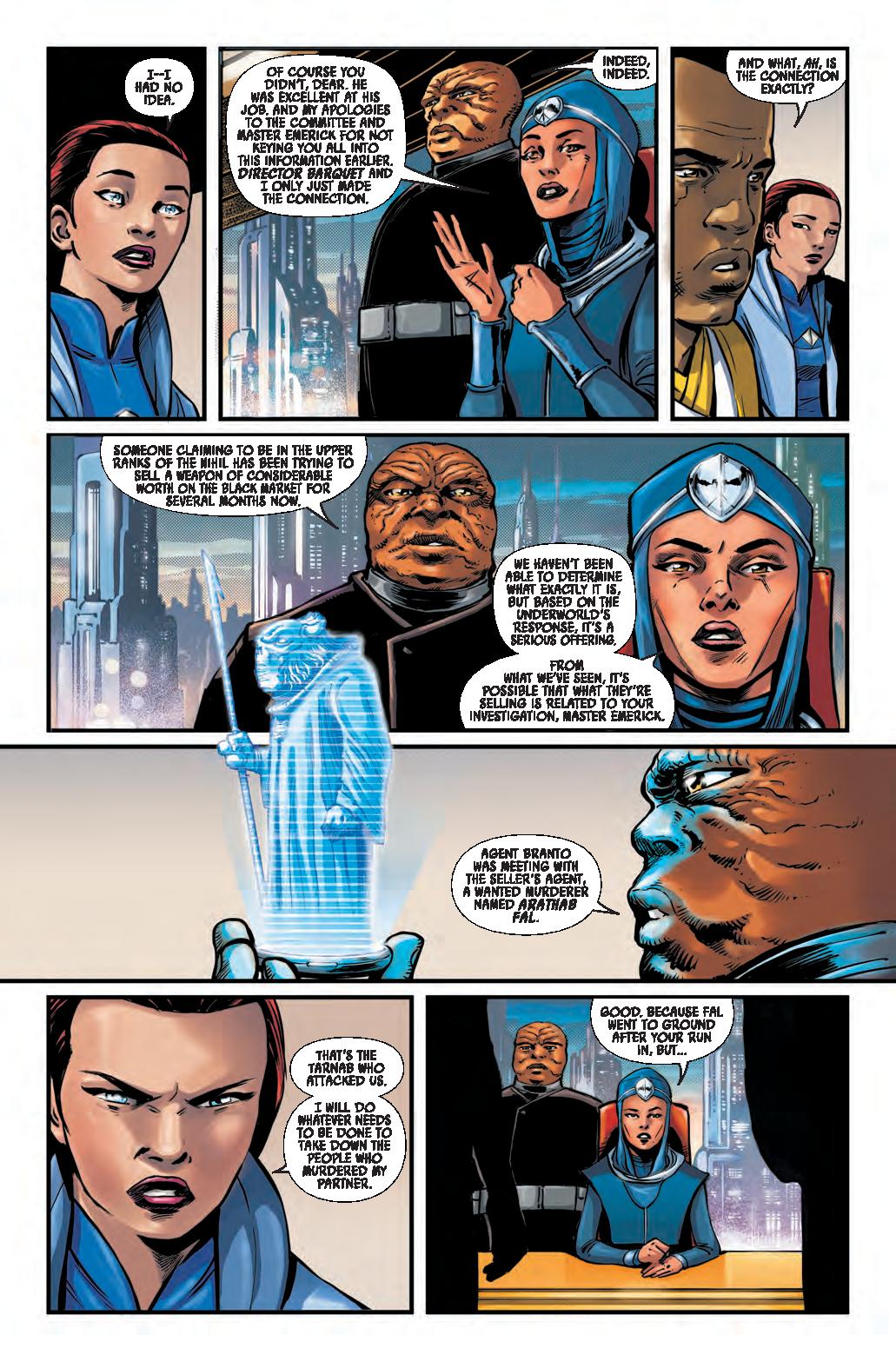 COLD COMFORT! • A mysterious attack brings EMERICK and SIAN together at the Starlight to investigate connections to their case. • Meanwhile, ARATHAB tries to ambush a Nihil ship with deadly results. • Can Jedi Master Emerick and private eye Sian Holt uncover the clues to solve this case, or are they about to face their deadly demise at the hands of Nihil?