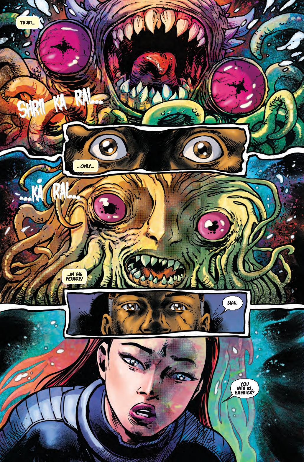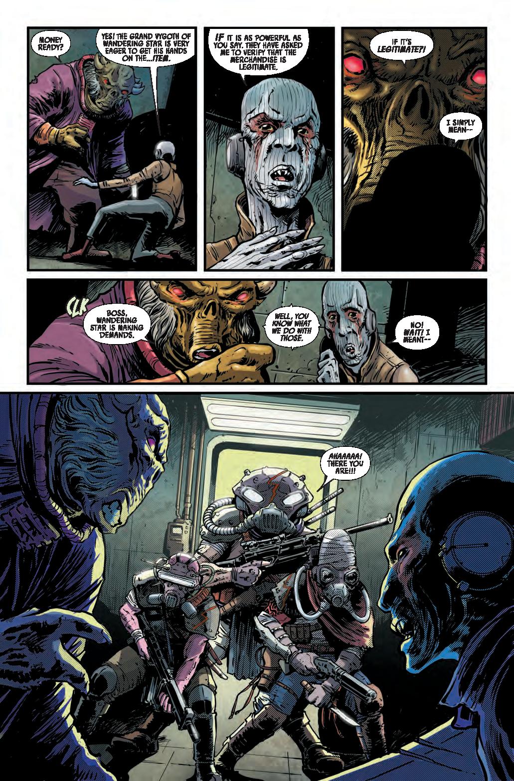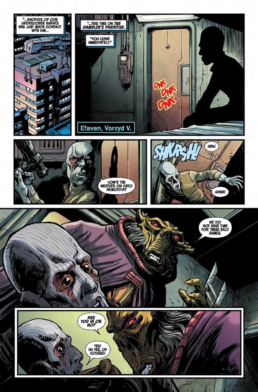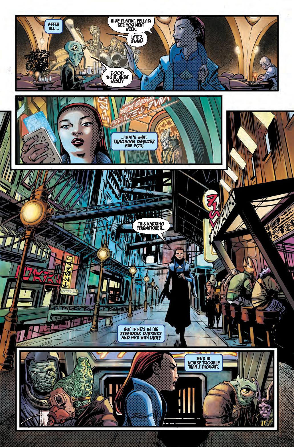 COLD COMFORT! • A mysterious attack brings EMERICK and SIAN together at the Starlight to investigate connections to their case. • Meanwhile, ARATHAB tries to ambush a Nihil ship with deadly results. • Can Jedi Master Emerick and private eye Sian Holt uncover the clues to solve this case, or are they about to face their deadly demise at the hands of Nihil?