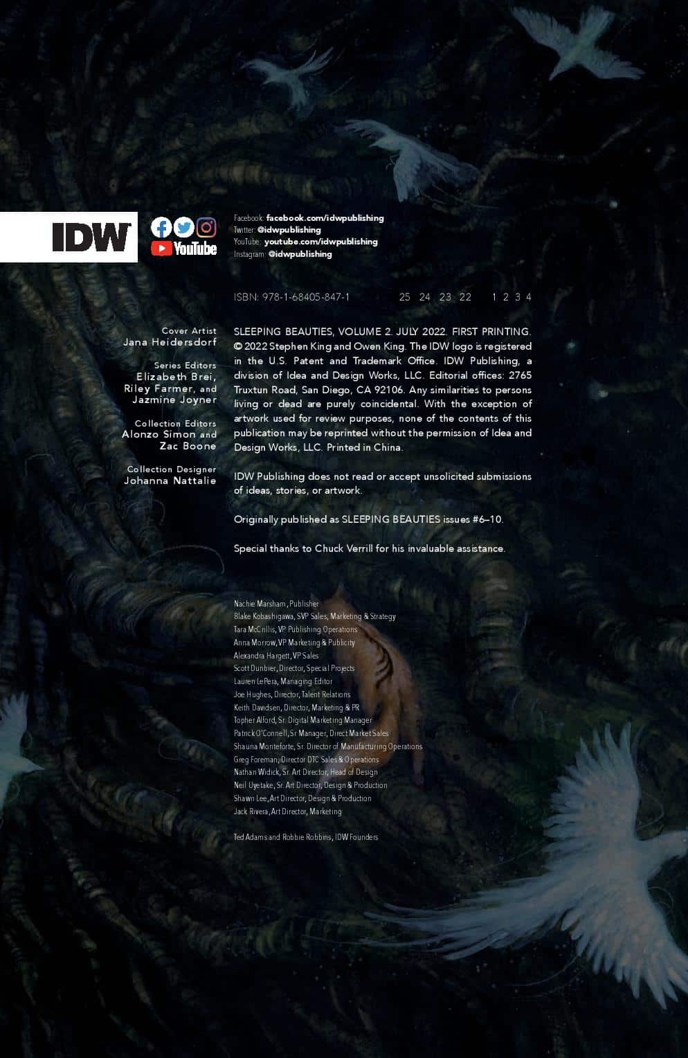 Overall, Sleeping Beauties Vol. 1 is an impressive story that has echoes of the panic that has occurred during our pandemic but reveals a much grimmer future. The story by the Kings is truly rapturous. The art of the creative team is awe-inspiring. The adaptation is some of the best work I have seen in a long time. Altogether, this adaptation of this modern classic is a game-changer.