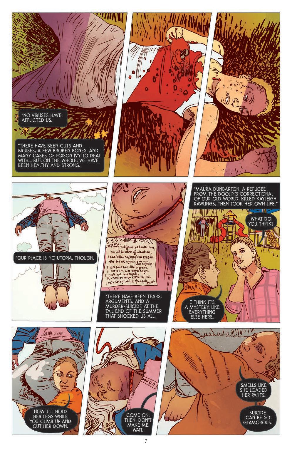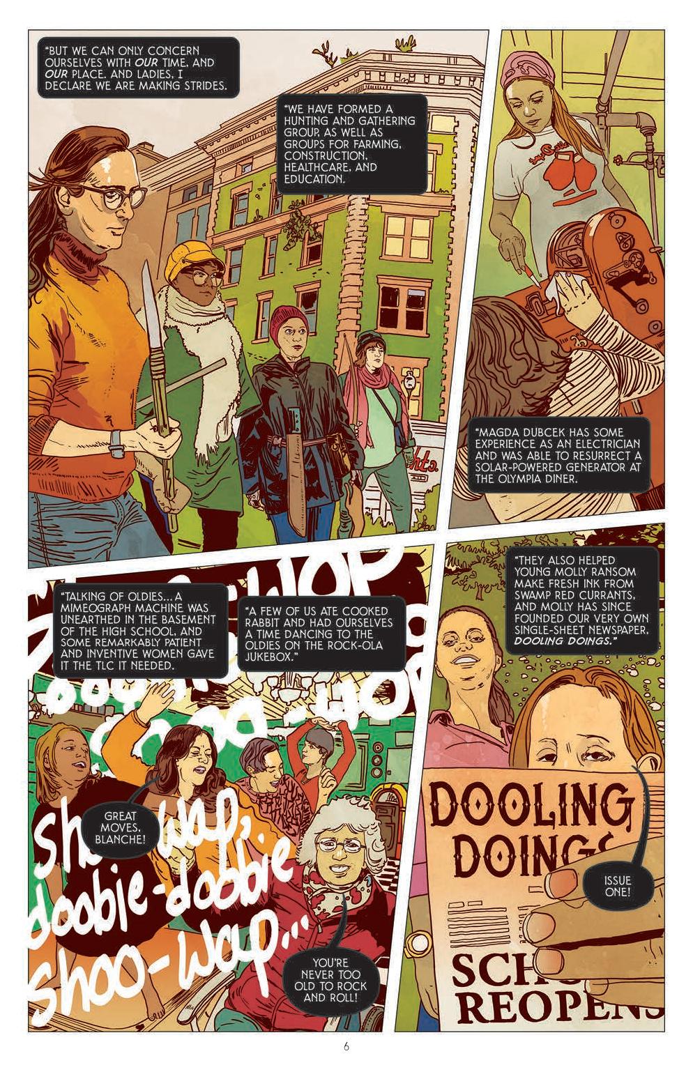 We are taken to a future where a malady has made a lot of the female population to fall asleep because of a disease called Aurora, except one, who says her name is Eve and who lives in the woods by a town called Dooling. As she awakens and wanders, we find the town has a penitentiary and has its own share of troubles, as she happens upon a house, and kills all the men who live there. Meanwhile, even more cases start popping all across the world, the most prominent in Australia, as the town starts getting flooded by everything natural including insects and animals become suddenly supernatural, a seeming harbinger of worst things to come. The sheriff eventually arrest Eve and brings her to the prison, where things on the outside only get worse, riots escalate, and increasingly, women all around the world including Dooling unconsciously turn into homicidal killers, attacking men everywhere. Eventually, militias rise up, blowtorching any trace of Aurora, even if it means lives. BY volume’s end, Eve reveals she is immune and can end all the chaos while some desperate locals look to end things by their own means.