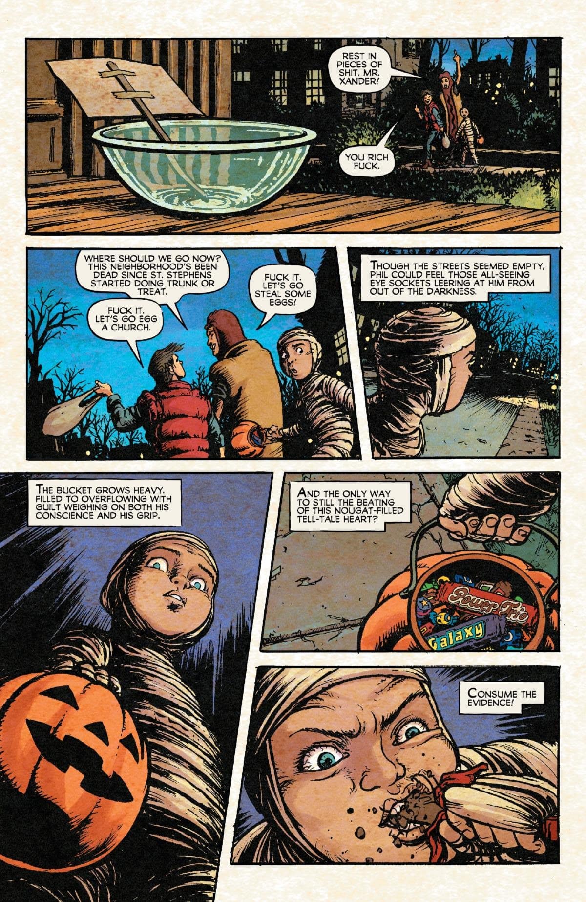 Featuring a brand-new second printing variant cover drawn by Gabriel Hardman and colored by Brad Anderson, Creepshow #1 includes two terrifying tales. Writer/artist Chris Burnham scares up a story of trick or treaters who are taught what happens when you mess with the wrong house, and then writers Paul Dini and Stephen Langford team up with artist John McCrea to petrify readers with the party antics of Shingo, the birthday clown with an appetite for more than cake.