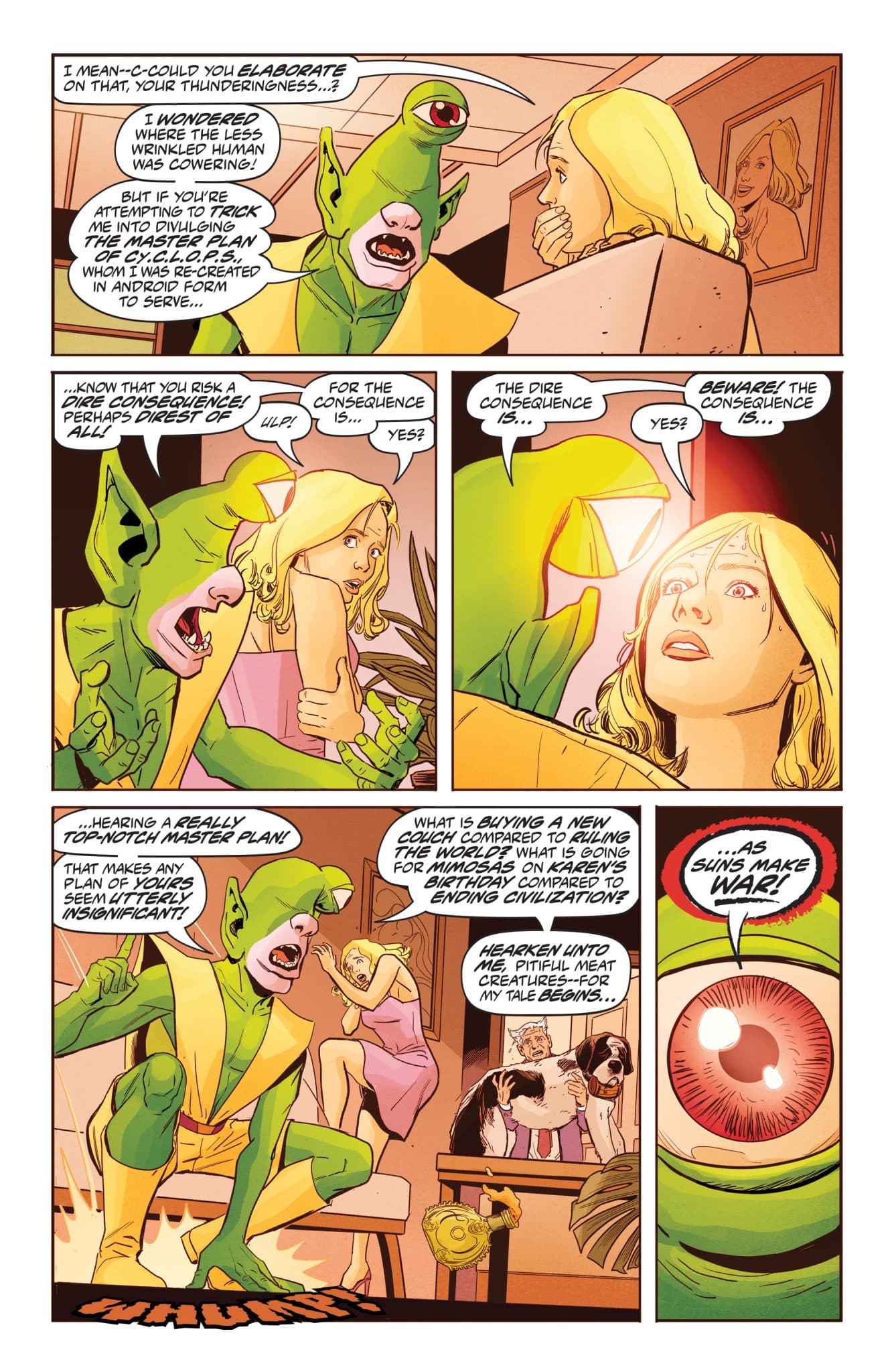 ONE METAMORPHO TOO MANY! Ask yourselves, readers–what could be more merely magnificent than five issues of the one and only Metamorpho? Well, howzabout we turn it around–and give you five Metamorphos in one issue? Brace yourselves, Metamaniacs–because when Rex Mason and Urania Blackwell face the ultimate agent of Cy.C.L.O.P.S., their only option is to form an all-new Element Team–a fab and freaky fighting force formed from the fusion of a fearless friend, a fiendish foe, and…Element Dog? Can Al Ewing and Steve Lieber pull this one off, or is it a case of Too Many Metamorphos?