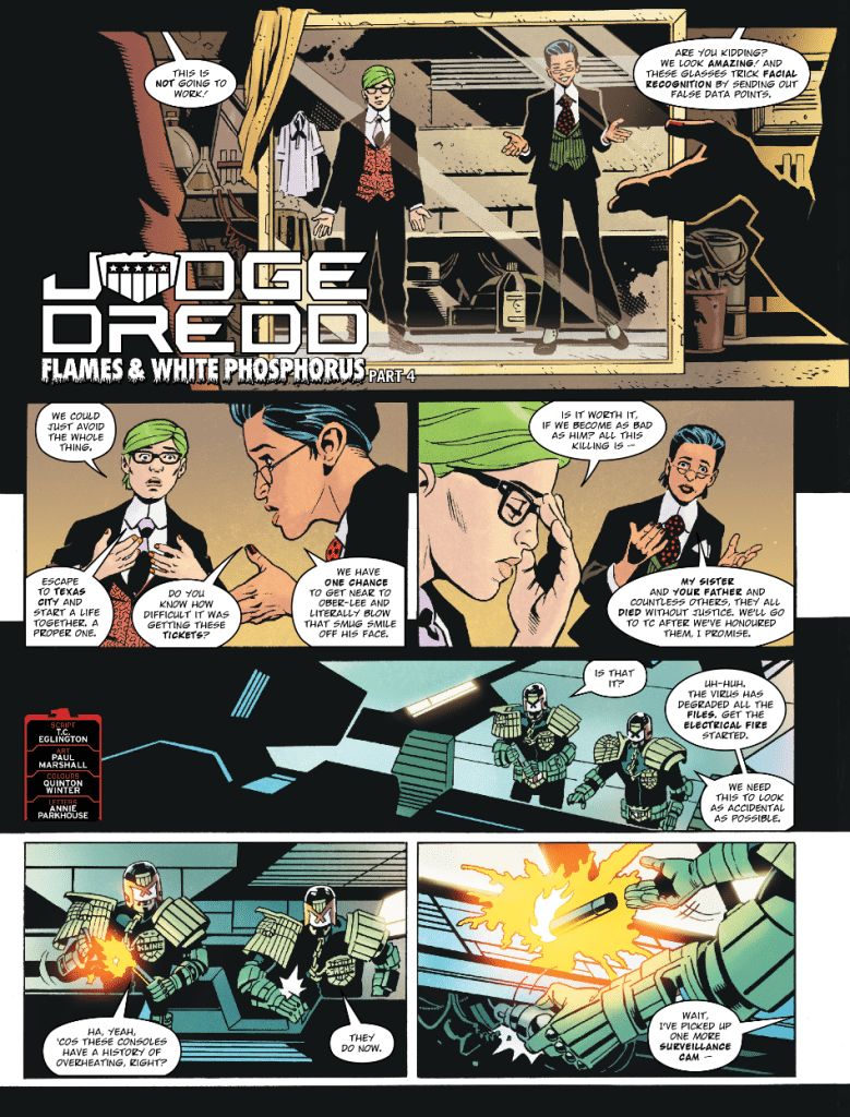 JUDGE DREDD // FLAMES AND WHITE PHOSPHOROUS by TC Eglington (w) Paul Marshall (a) Quinton Winter (c) Annie Parkhouse (l)