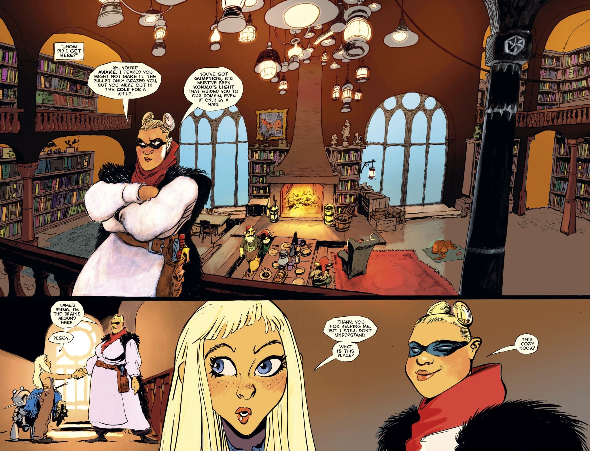Peggy Stones has come far on her own, but not a step further! Will she make it long enough to find out if the mythical Baron of Stories is real? Who are they, and will they help young Peggy to stop Fuel’s Day, or are they just another obstacle in her way? Find out what lies at the far reaches of the north, and whether Peggy’s journey was worth it! Another electric issue from this ragtag creative team of Joni Hägg, Stipan Morian, Ropemann, and Hassan Otsmane-Elhaou!
