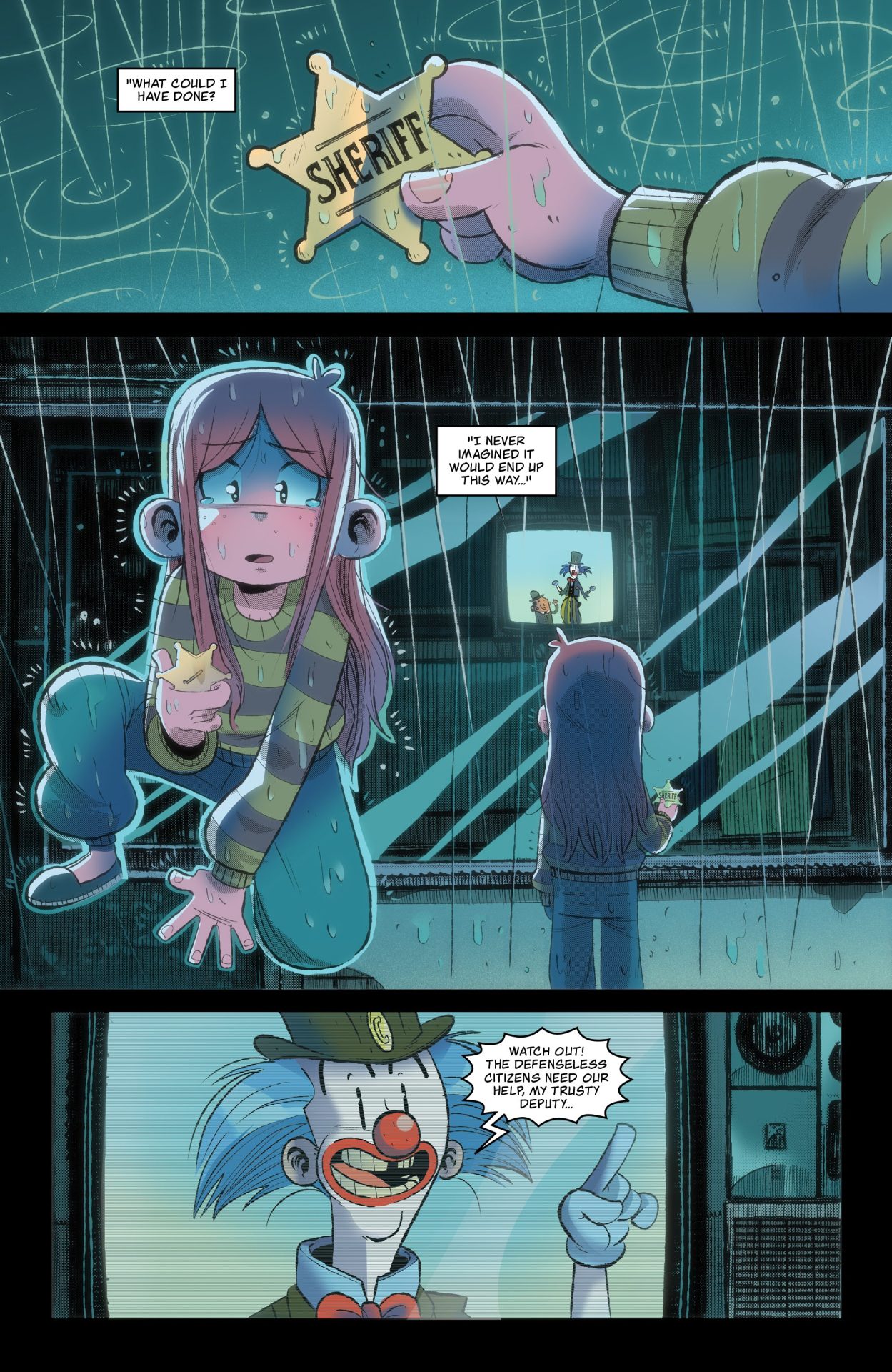 Set in 1985, young children Lilly and Andy are great friends who both admire the animated wild-west themed TV show Funny Creek. When a terrible tragedy occurs, Lilly finds herself trapped inside her favorite cartoon inhabited by good boys, bad boys and clowns. But the bright world of Funny Creek isn’t as far from the pains of the real world as she had hoped. She joins with Clumsy and Cody to face the devilish villains of Cold Joe and his gang of goons in a showdown in Funny Creek Town. But being a hero isn’t as simple as she thought. As Lilly is pushed deeper into the adventure she is forced to deal with the consequences of her actions—not only inside The Funny Creek show, but also in the real world—and must overcome her troubles and make her way home.