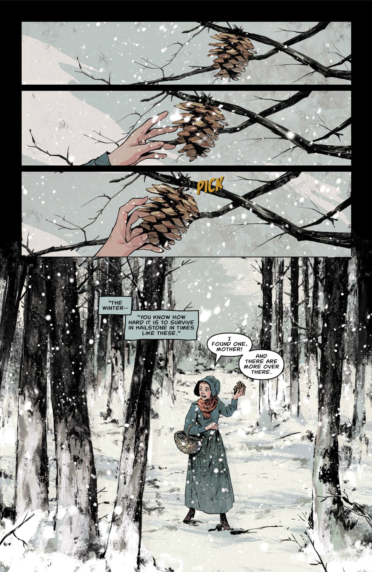 In this gripping and haunting series, the people of Hailstone, Montana are hungry and disappearing. Trapped by relentless snow, the remaining townspeople grow increasingly desperate and come into conflict with the well-stocked military factory in the area. The situation grows worse when a local girl named Mary disappears while searching for food with her mother. Sheriff Denton Ross and his deputy Tobias step in to keep the peace, but their efforts start them down a dangerous path. Their investigation into Mary’s disappearance reveals a mysterious and well-kept secret that will change their lives forever. . . . But only if they survive.