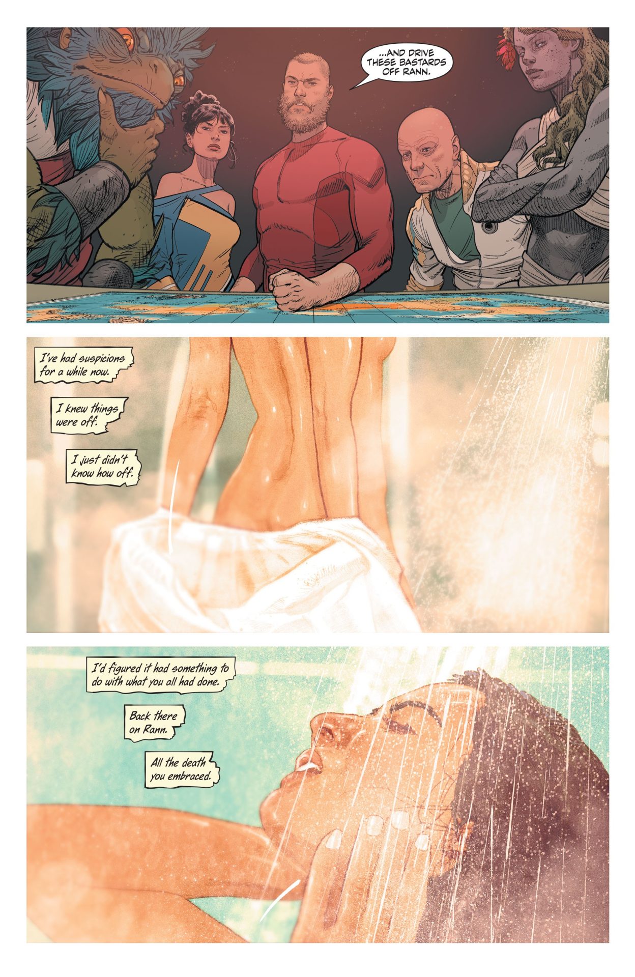 The story is an interesting one as it bounces back and forth between the war on Earth and what Strange experienced on Rann. This is the issue before the big reveal as it becomes clearer that Strange has done some horrible stuff that’s being covered up.