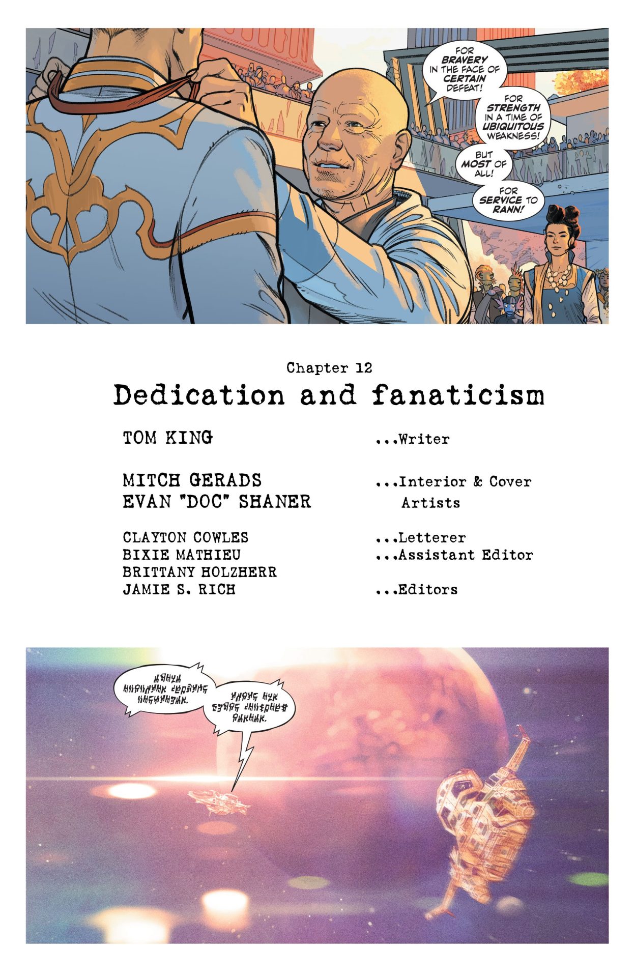 Despite the serious nature of the comic, King delivers some humor. Mr. Terrific and Batman attempting to interrogate a Pykkt soldier is fantastic. Batman’s attempt at the language and Mr. Terrific’s response are classic. That’s juxtaposed with how Adam Strange approaches a similar situation. That’s not so humorous.