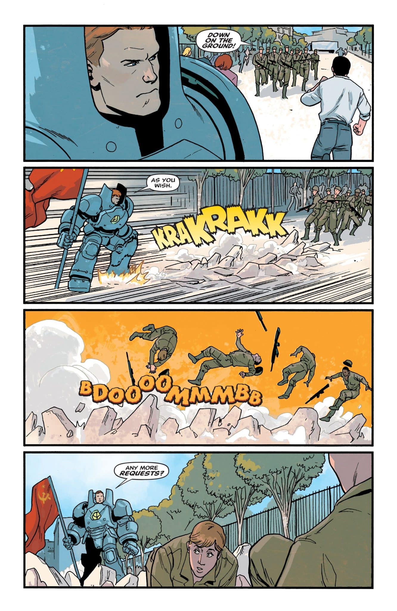 The story is an entertaining one, playing off of the Cold War and arms sales, it leads into the introduction of a familiar character with a new twist. And Venditti makes it all work. The story feels like a logical extension of a film that was the big screen introduction to superheroes for so many.