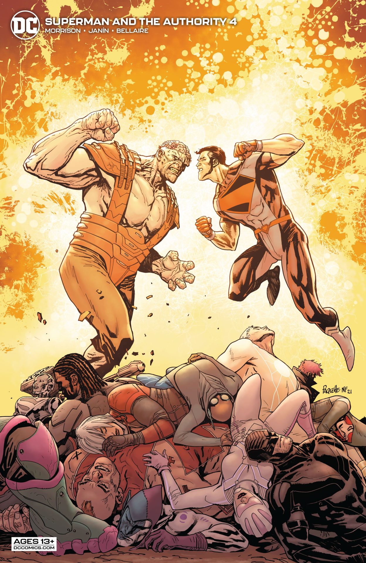 Imagine a world where the Justice League failed in their mission to bring about modern Camelot on Earth, either the King Arthur one or the John F. Kennedy New Frontier one. Both fell any way. Writer Grant Morrison, artist Mikel Janin, and colorist Jordie Bellaire explore this avenue plus an ailing Superman in the first issue of their new miniseries Superman and the Authority. This comic is the perfect distillation of Otto Binder and that other British comic book writer with a beard who was a sex pest. Opening with an earnest chat between Superman and JFK and concluding with a gin-swilling British anti-hero vomiting on (a representation of) the world, Superman and the Authority brings together Silver Age and the Dark Age, but the decent Vertigo/Wildstorm stuff, not Lobdell and Nicieza on the X-Books.