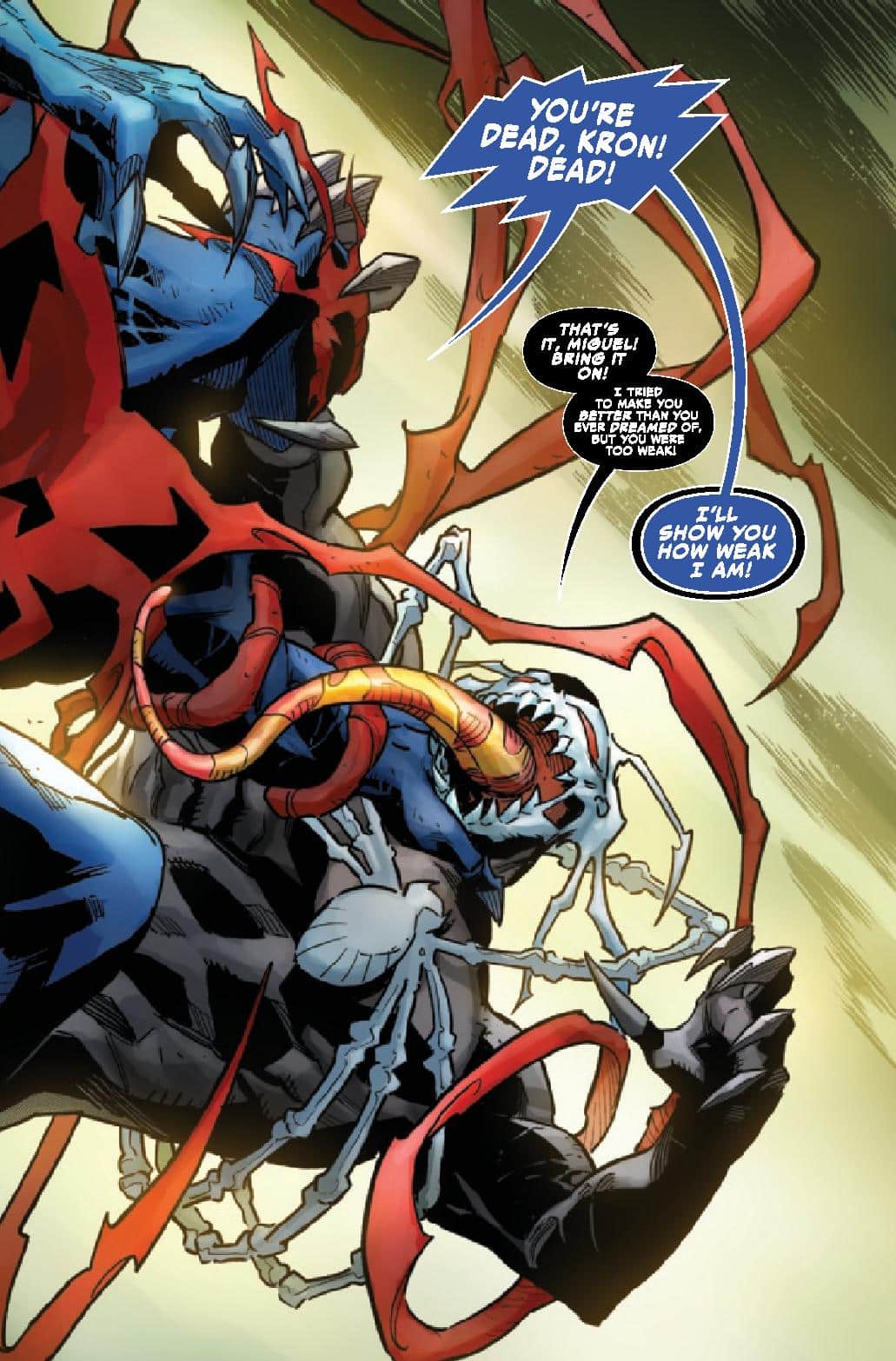 Set your time circuits ahead to the techno-dystopian future of 2099! Miguel O’Hara, A.K.A. Spider-Man 2099, is facing a hostile takeover – of his own body! Kron Stone, the Venom of 2099, wages an all-out assault on Alchemax, and the only hope of stopping him lies with the power awakened by a top-secret project gone terribly wrong. What must Miguel sacrifice to seal the bond with his new symbiote – his body? His mind? His very soul?!