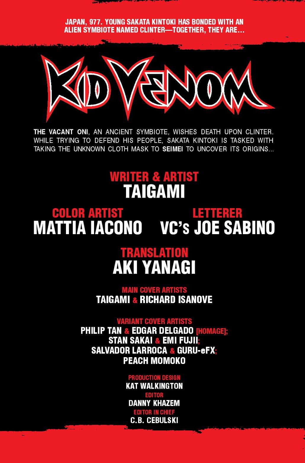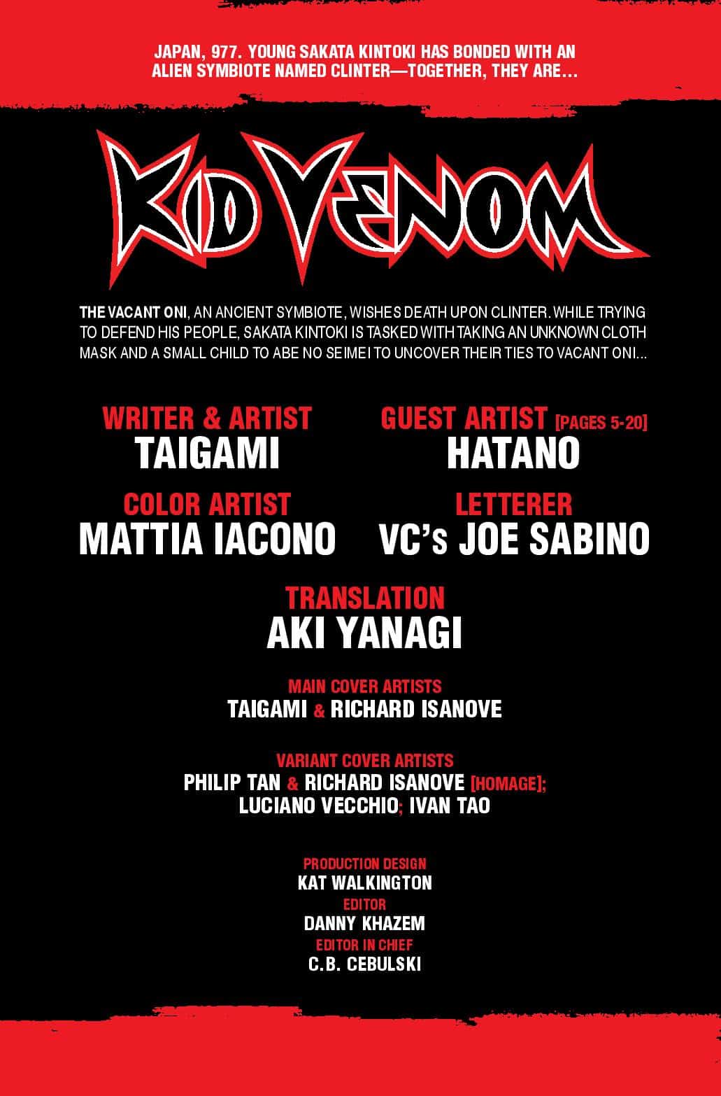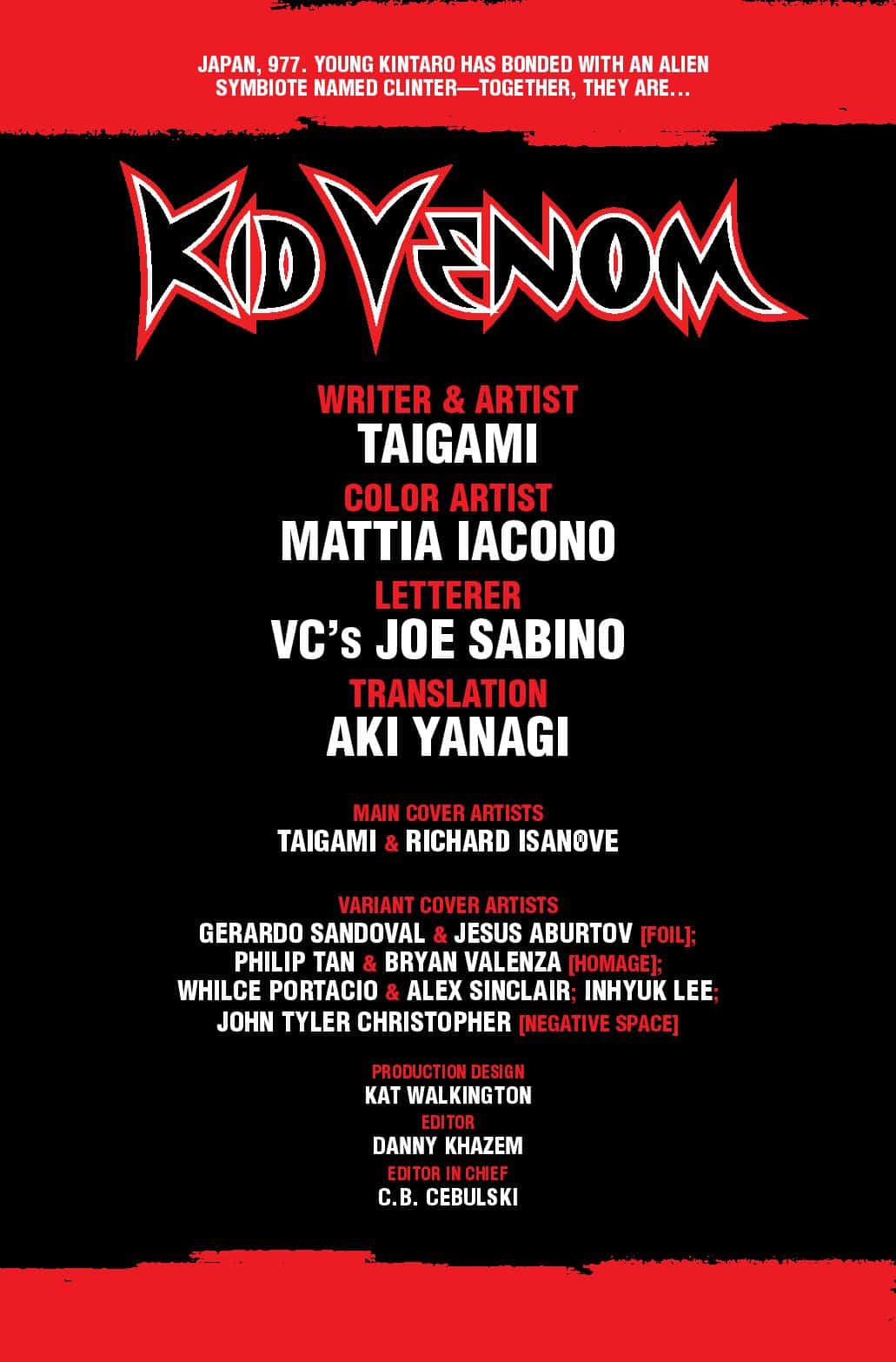 JAPAN, 977. Kid Venom has made his presence known to the evil symbiotes taking people and creatures hostage…but who else has their eye on Kintaro and his symbiote? Witness the world of Kid Venom expand as new characters and dangers are revealed!