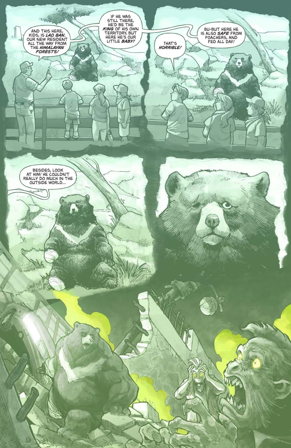 Ba is joined by Fero Pe on art with color by Luis Antonio Delgado and lettering by Nathan Widick. The art does an interesting mix of jumping between Ba’s brutal action and the interviews. The transition isn’t always great but each segment is solid.