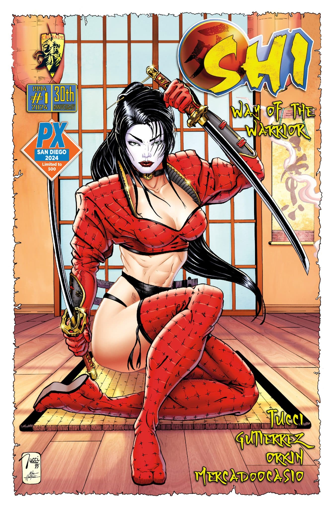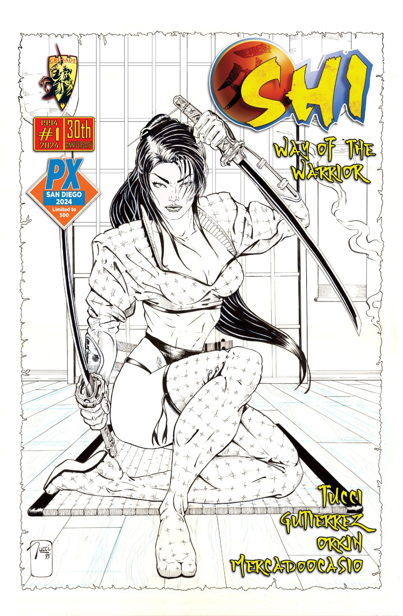 SAN DIEGO 2024 SHI #1 WOTW PX 30TH ANNV COLOR ED (APR247256) | In 1994, Shi: Way of the Warrior #1 literally changed the face of comics and launched the “Bad Girl” revolution returns with this limited Edition 30th Anniversary San Diego exclusive Special. This expanded 36-page special includes Shi’s original BW story, art and extras that have been remastered from the original art files been remastered from the original art files. This PREVIEWS Exclusive variant cover by Billy Tucci is limited to just 500 pieces.