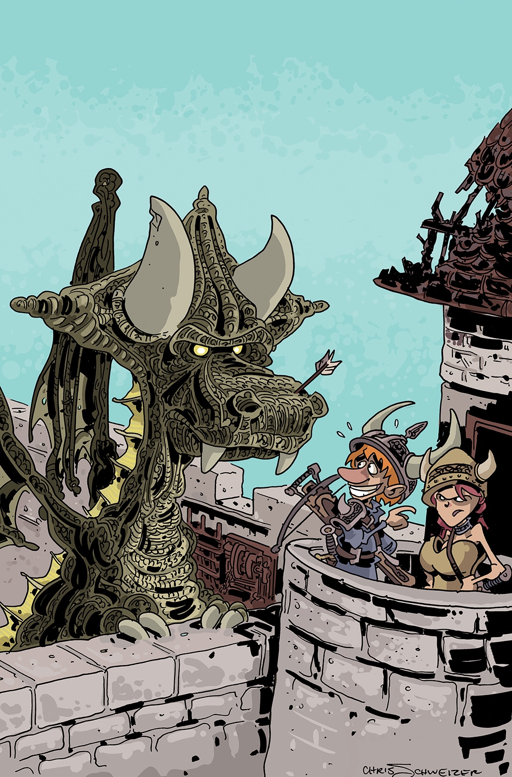 Based on the popular game of the same name, the Munchkin comic gives you a whole new way to enjoy the world with Spyke and Flower. In this issue, check out what it’s like to be a monster whose door just got kicked in by some Munchkins! Plus, an exclusive game card is included with every copy of the first printing!