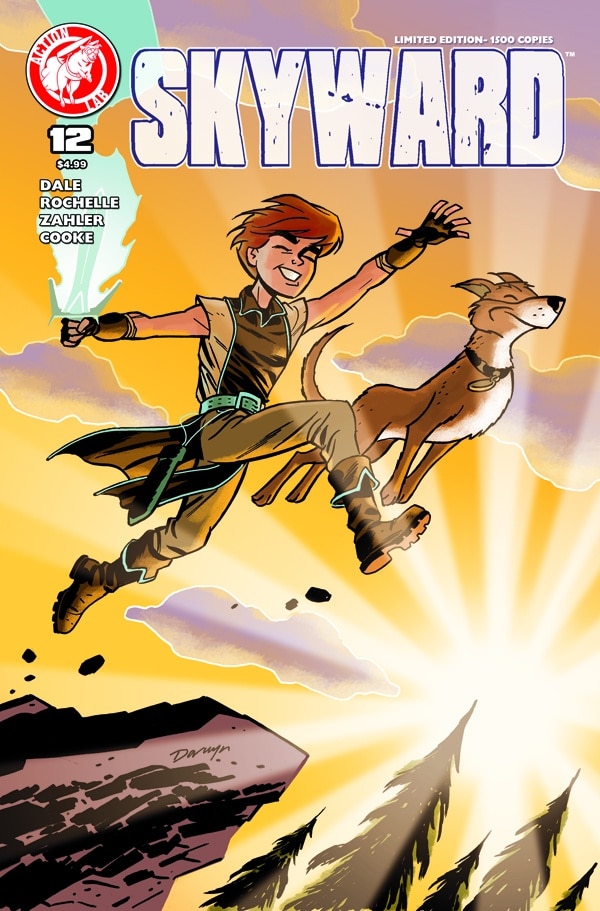 Celebrating its first full year, SKYWARD is thrust into new lands with new peoples, creatures…and distractions? In the midst of a changing land, our heroes find that the Battle of Three Rivers was only the beginning of a brand new conflict! This issue also features a LIMITED Edition variant cover (1500 copies) by DARWYN COOKE (Parker, DC’s New Frontier)!